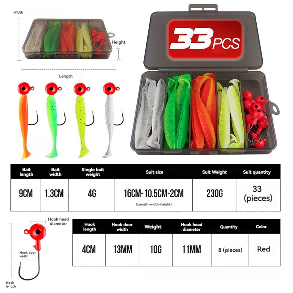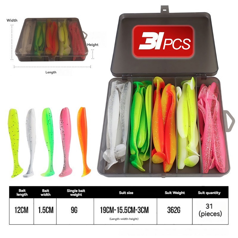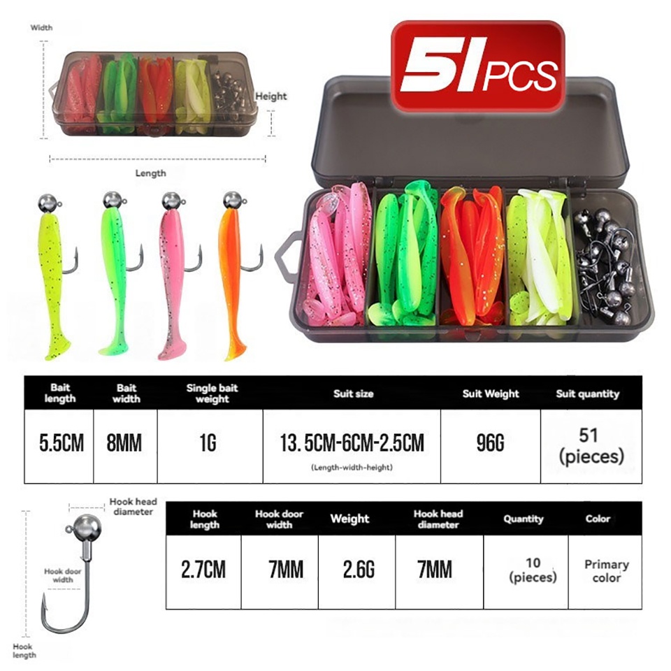 SKYBAITS Conjunto De Iscas Macias 5,5cm/7cm/9cm/12cm Em T De Cor Dupla E Anzol De Chumbo Para Peixes