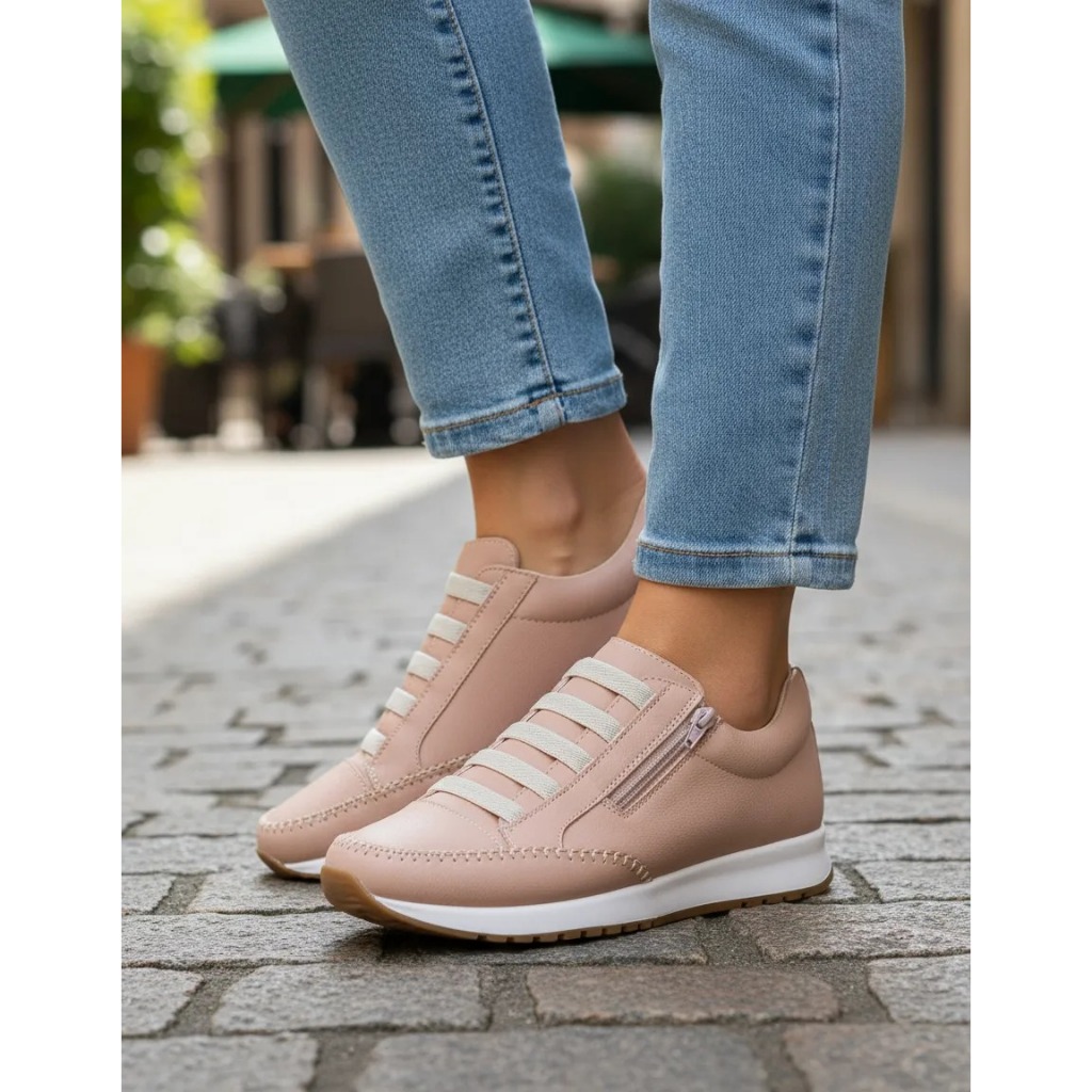 Tenis Casual Feminino Zíper Lateral Calce Fácil Moda Lançamento