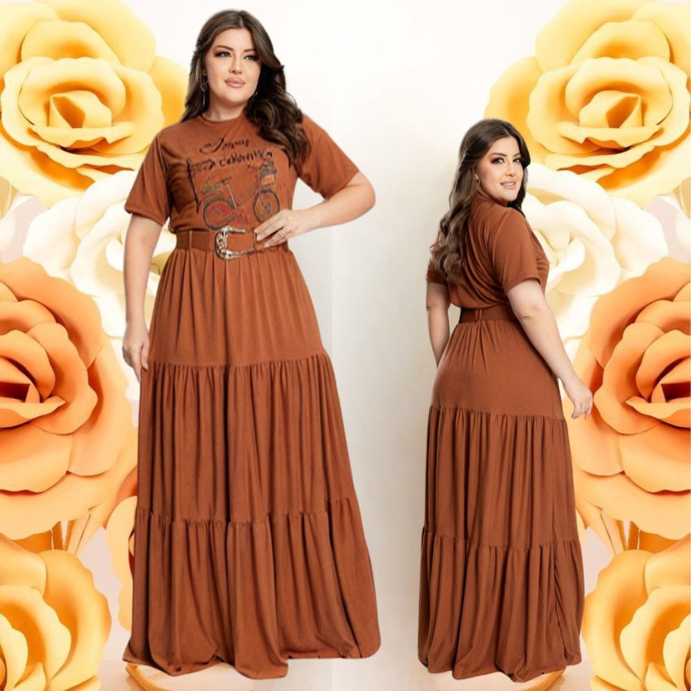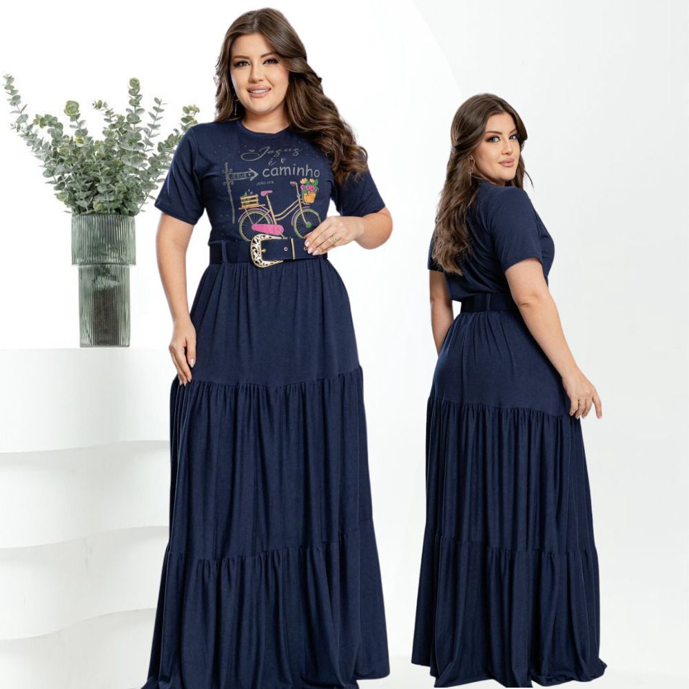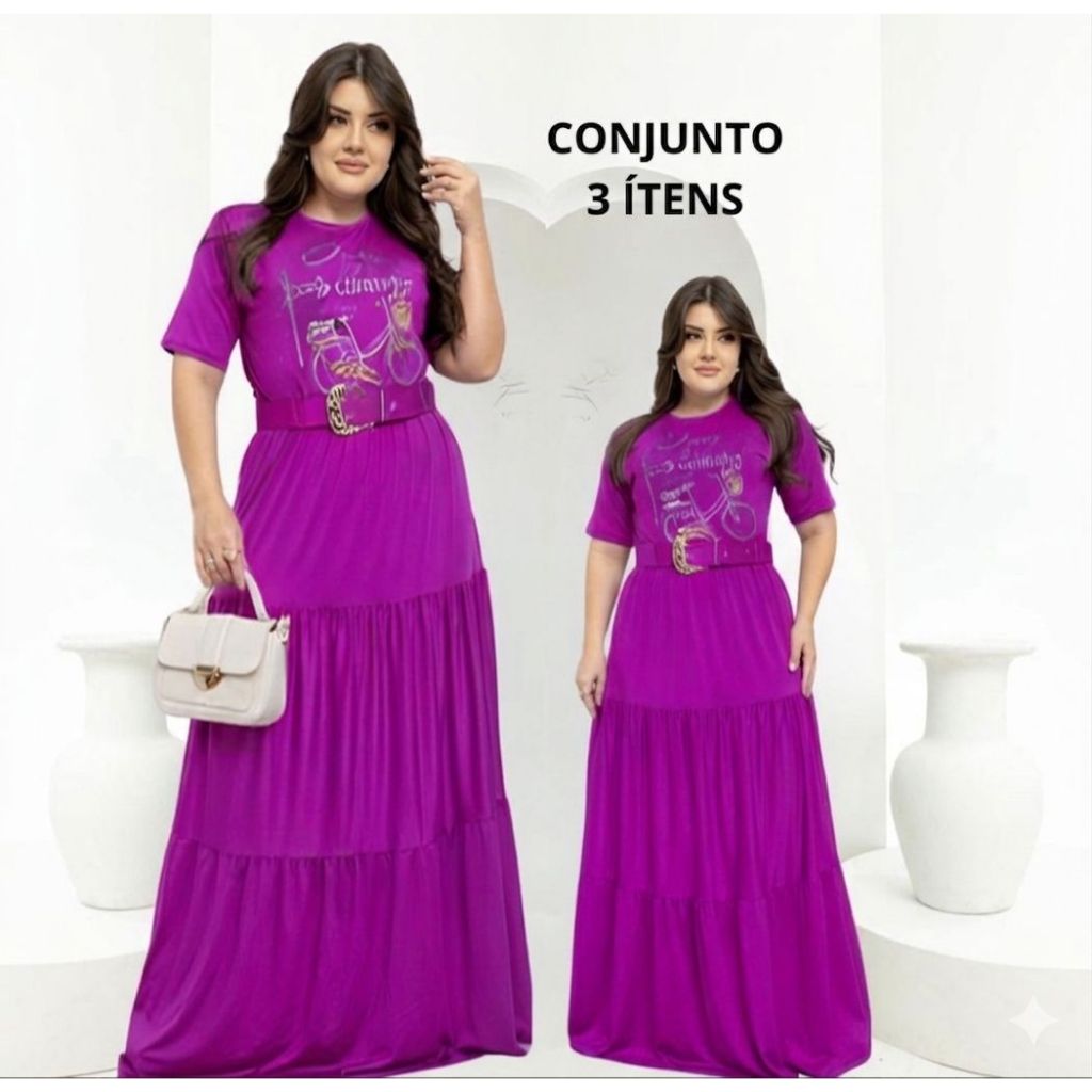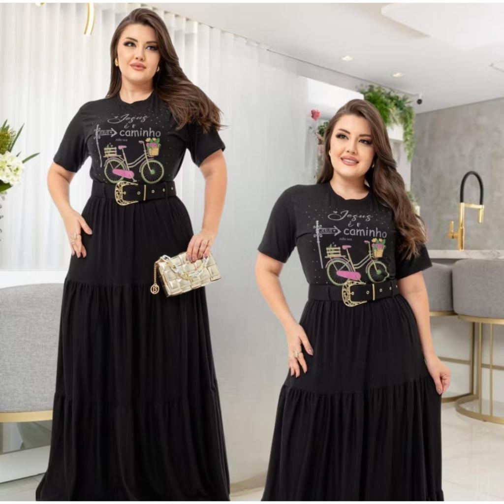 Conjunto Social Saia Longa Com Blusa E Cinto Plus Size Manga Curta Moda Evangelica Para Congresso
