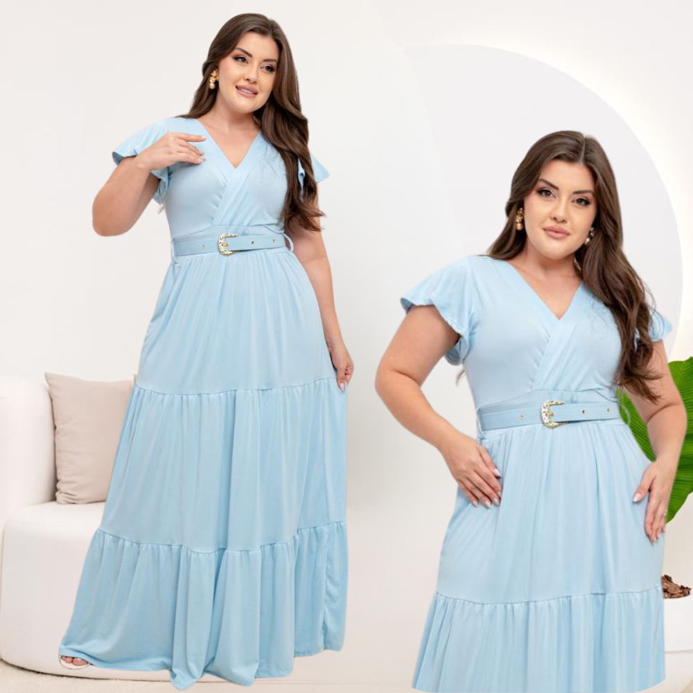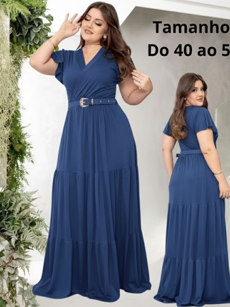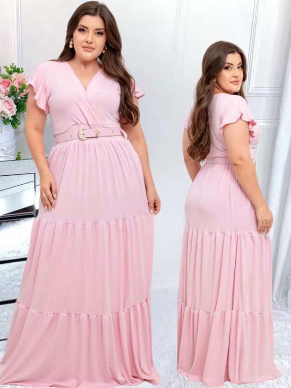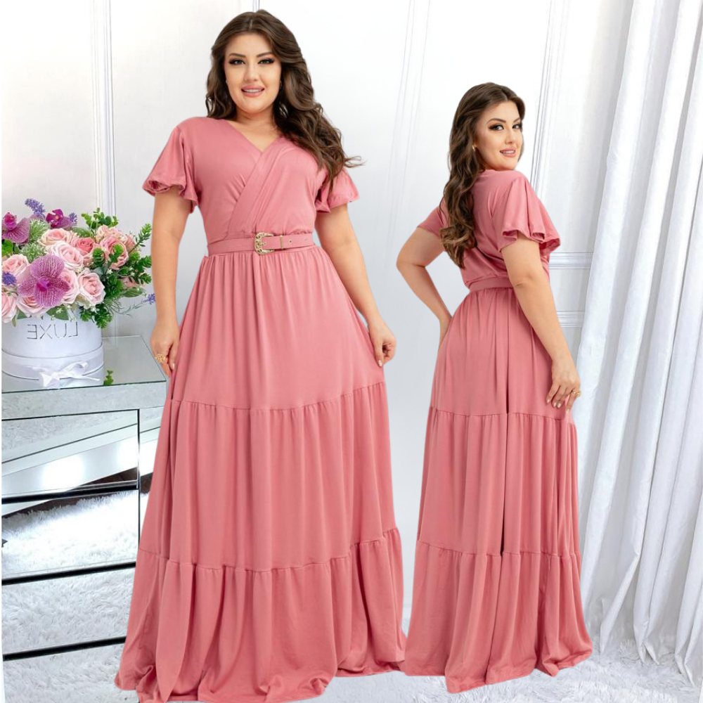 Vestido Longo Feminino Casual Manga Curta Moda Evangelica Com Cinto Plus Size Para Congresso