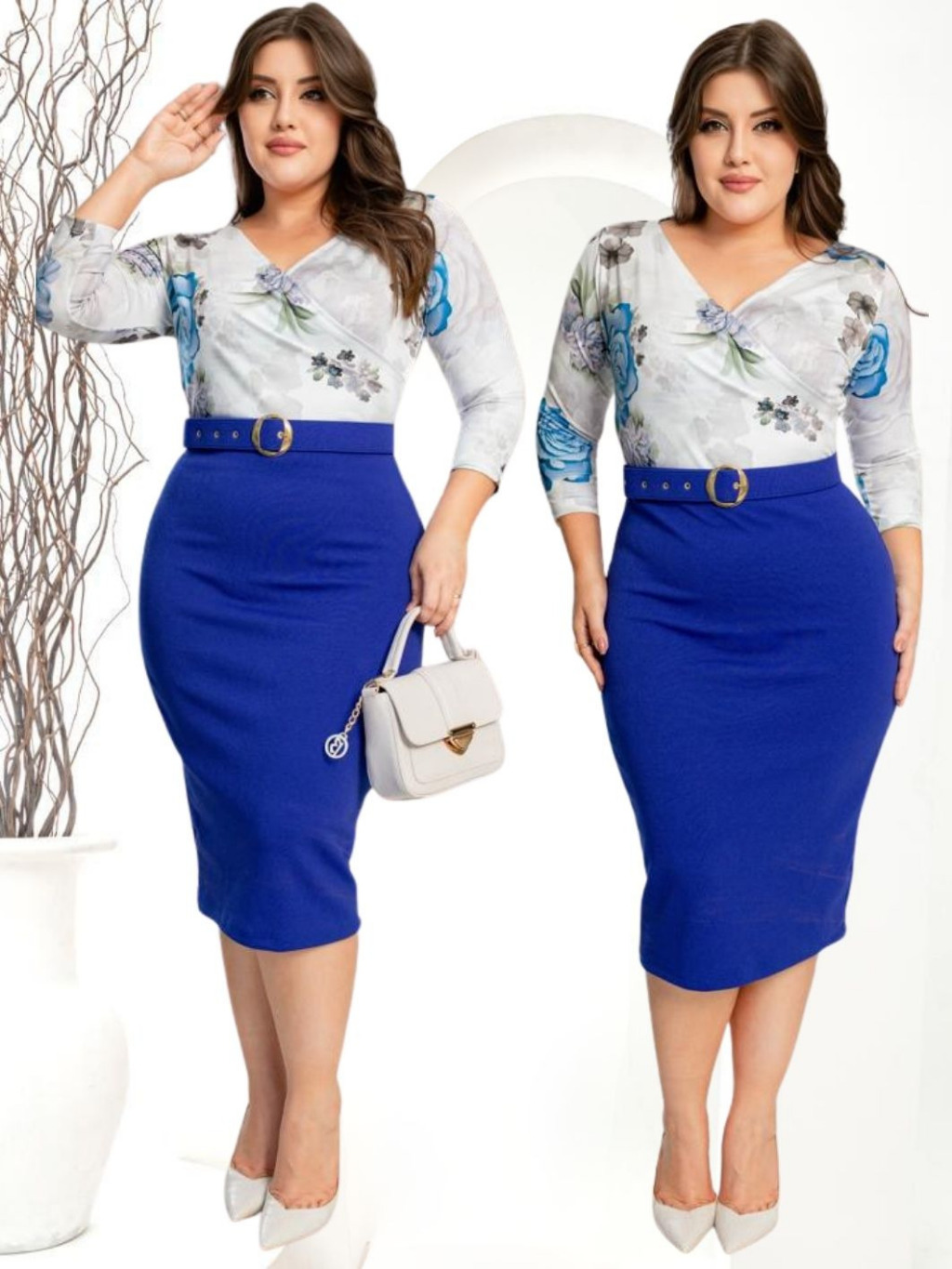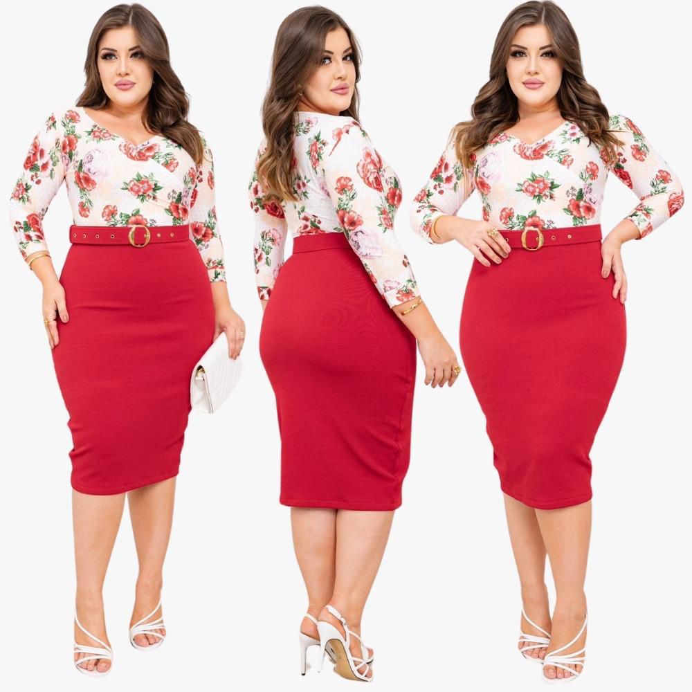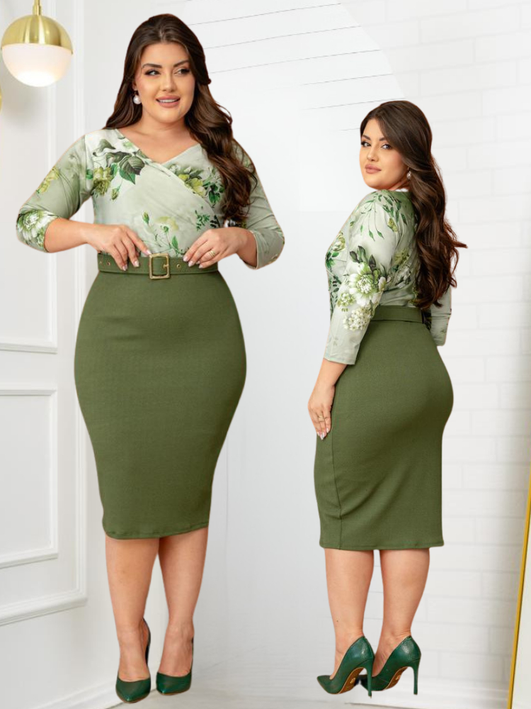 VESTIDO MIDI SOCIAL MANGA 3/4 COM CINTO MODA EVANGELICA PLUS SIZE PARA CONGRESSO