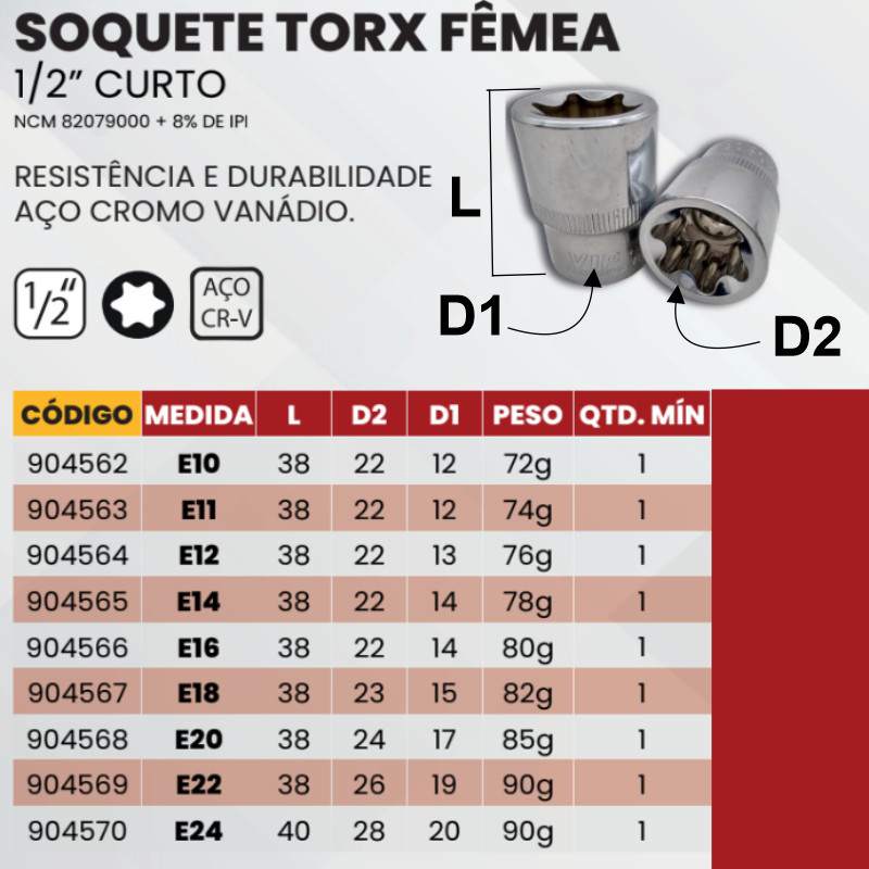 Soquete Torx Fêmea - Todas as medidas - Avulso - VIP Industrial
