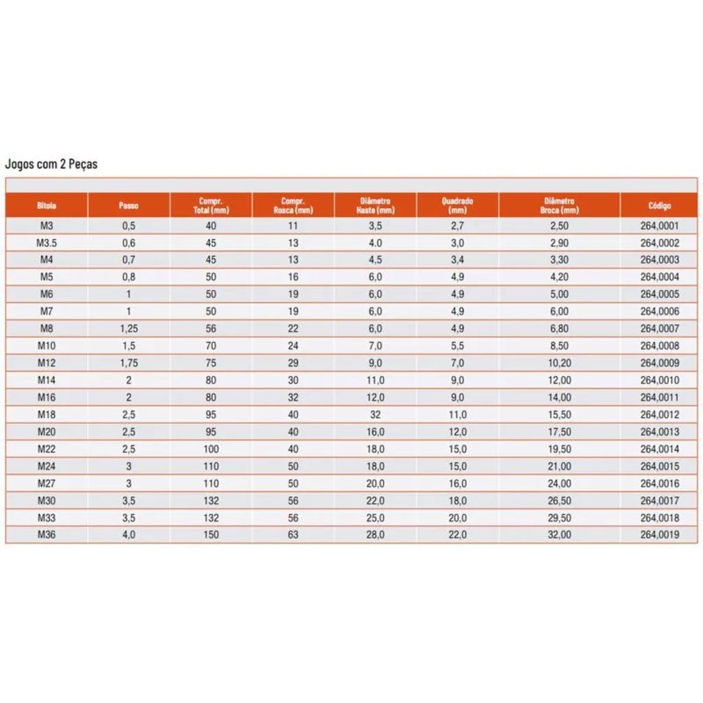 Jogo De Macho Manual M 10 X 1,50 - 2 Pçs - Aço Liga Rocast
