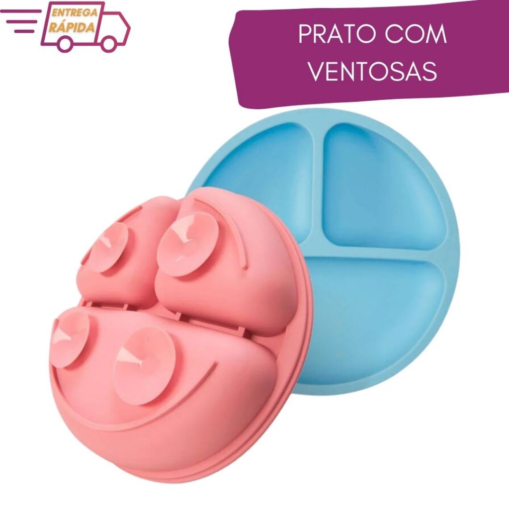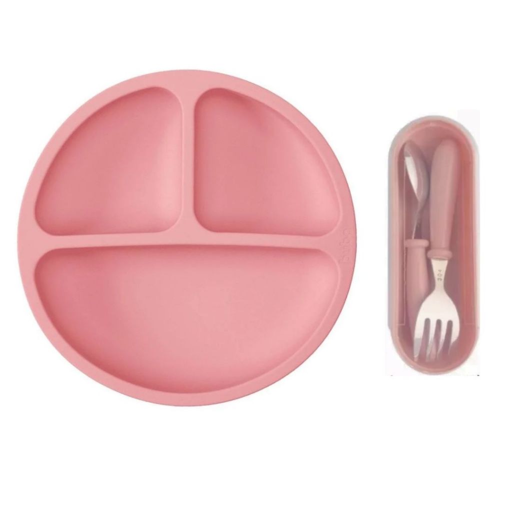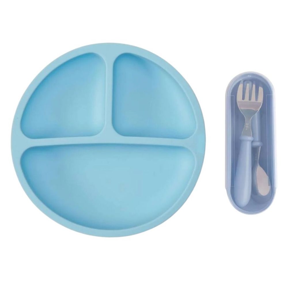 Kit Talheres Aço Inox Sem Ponta com Estojo + Prato Infantil Com Ventosa Silicone