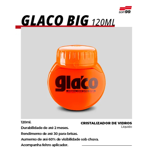 Glaco Big 120ml Cristalizador de Parabrisas Repele Água