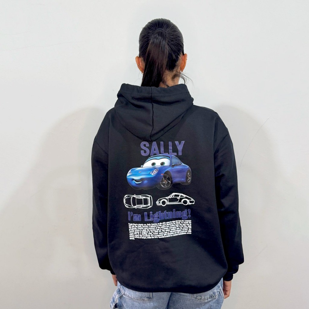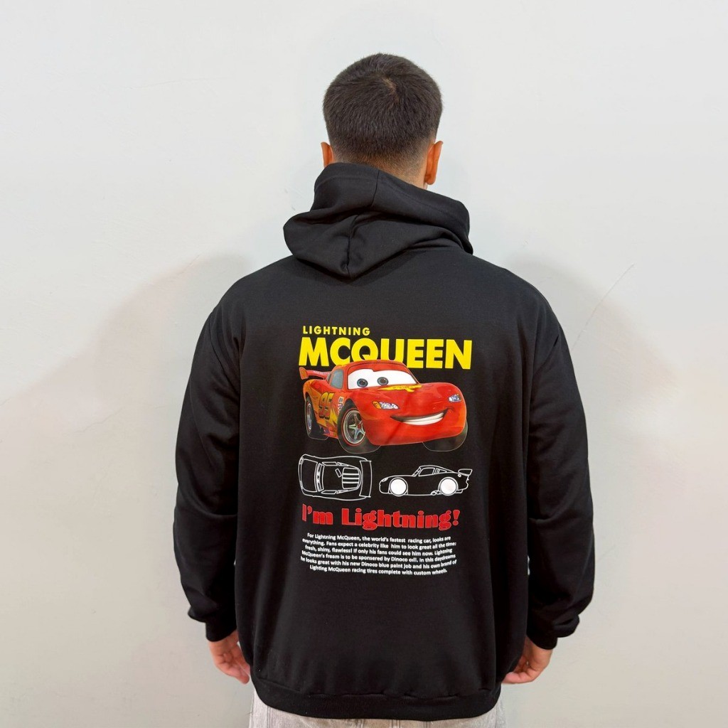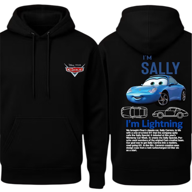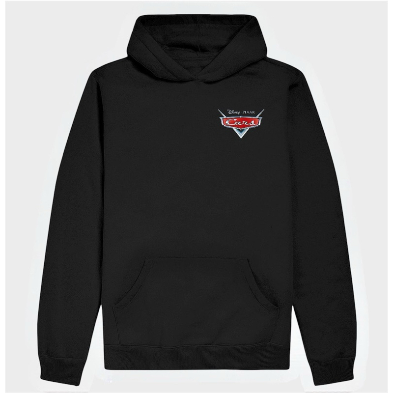 Kit Casal Moletom Preto Canguru Relâmpago McQueen e Sally Carros Disney Unissex Inverno Algodão