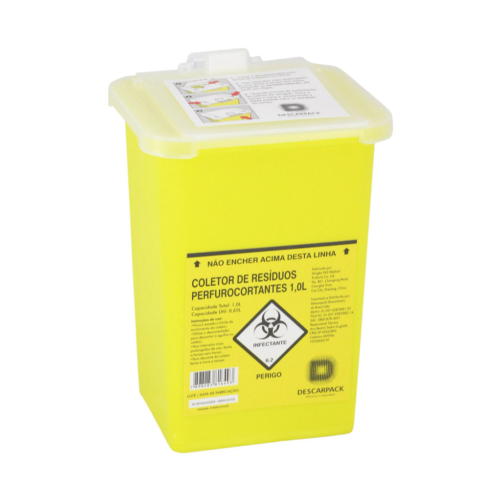 Coletor Para Material Perfurante Cortante Portátil Rígido 1 Litro Descarpack