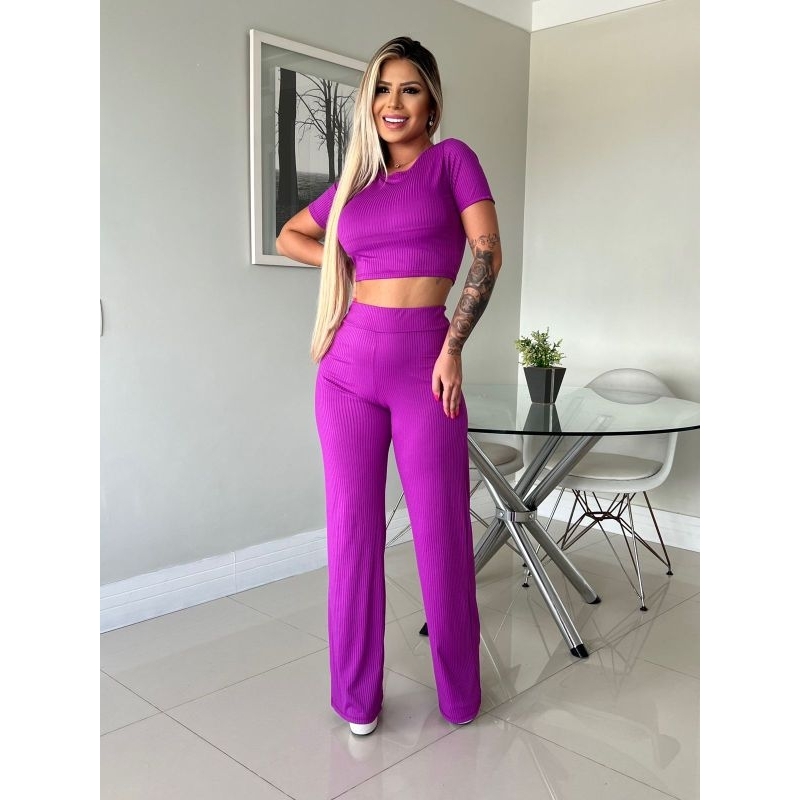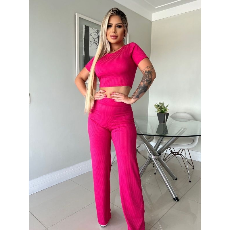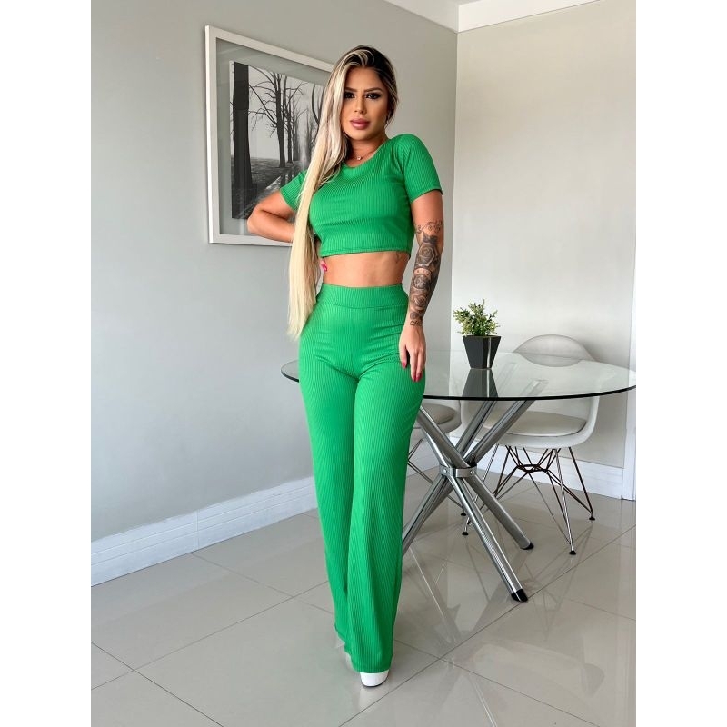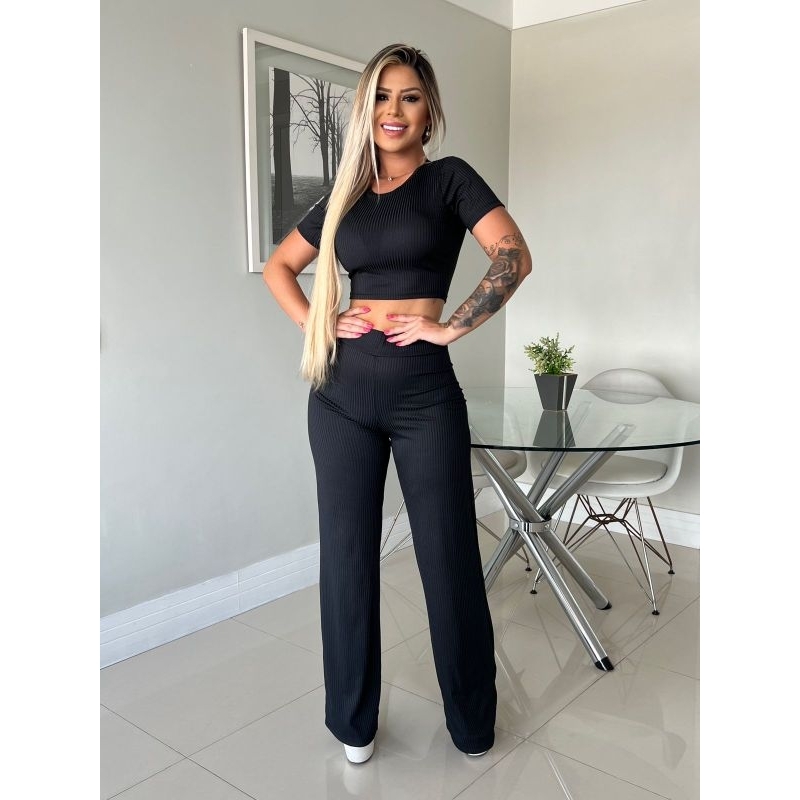 Conjunto feminino canelado KIT calça pantalona + cropet 36 ao42 confortável