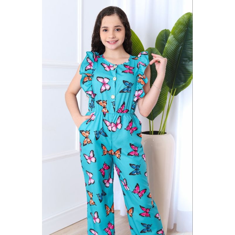 Macacão Infantil Feminino Estampado Borboletas Pantalona com Botões estiloso e conforto Black Friday
