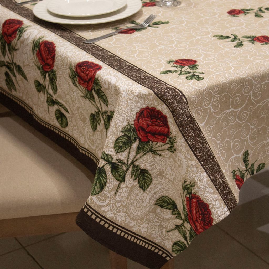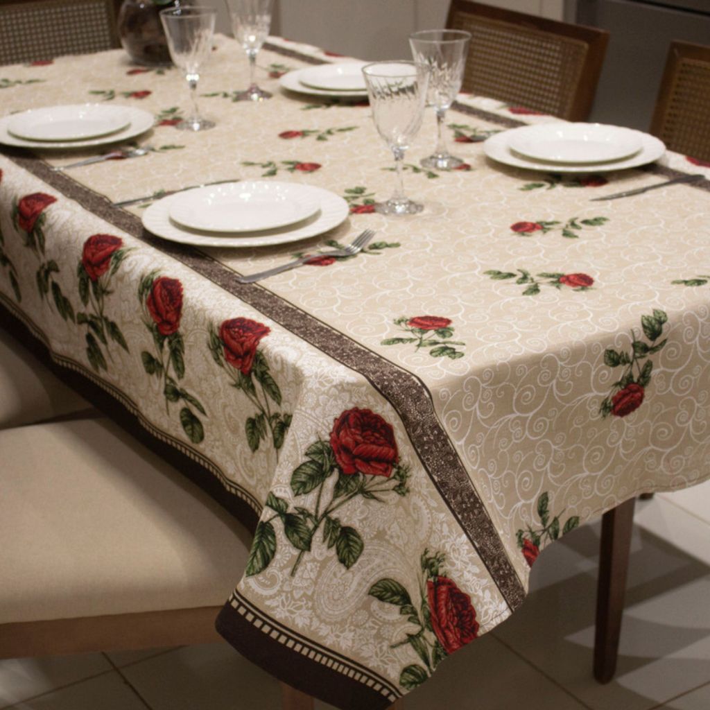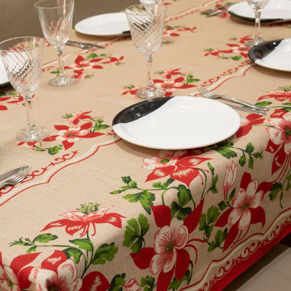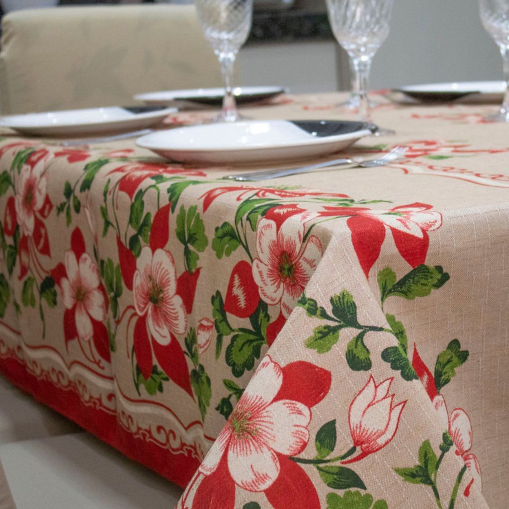 Toalha de Mesa Rústica 3,00m x 1,45m em Tecido Linhão 10 Lugares Estampada Retangular