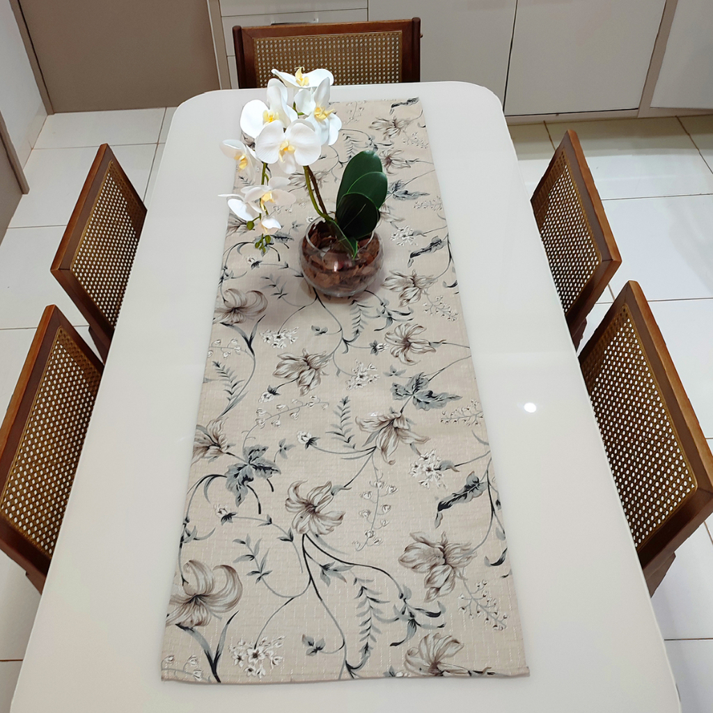 Caminho Trilho de Mesa Decorativo Linhão 1,50m x 0,50m Decoração - Floral Cinza