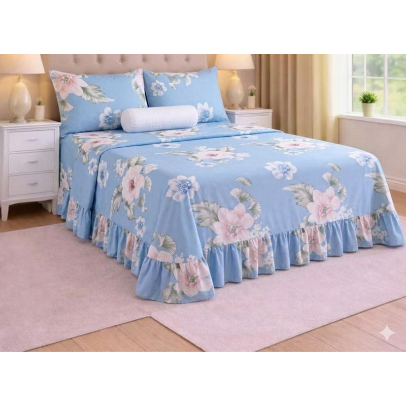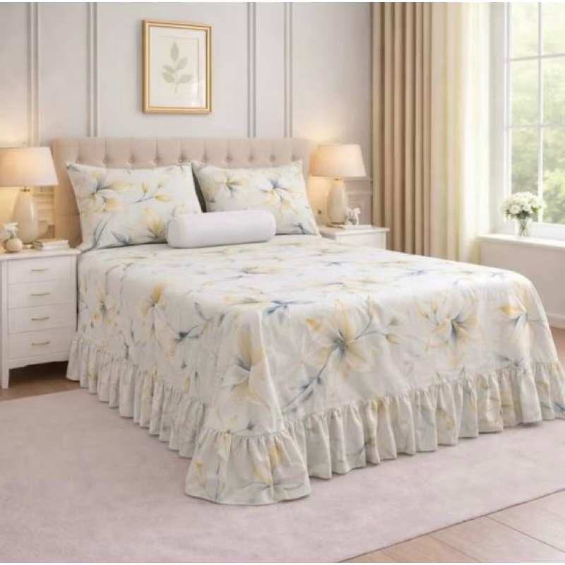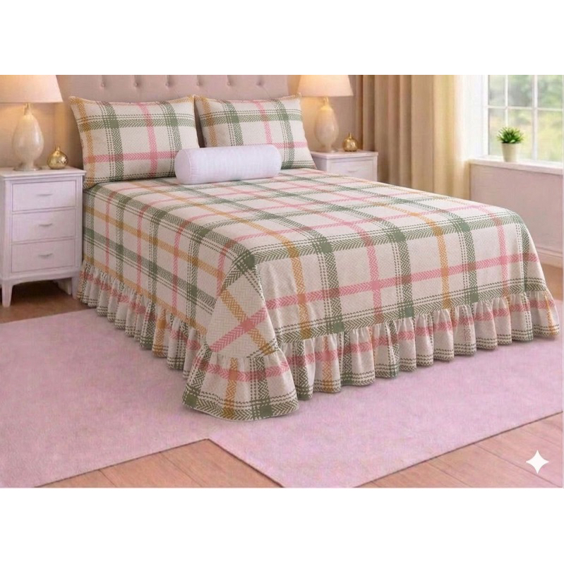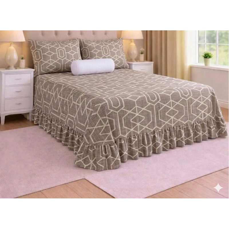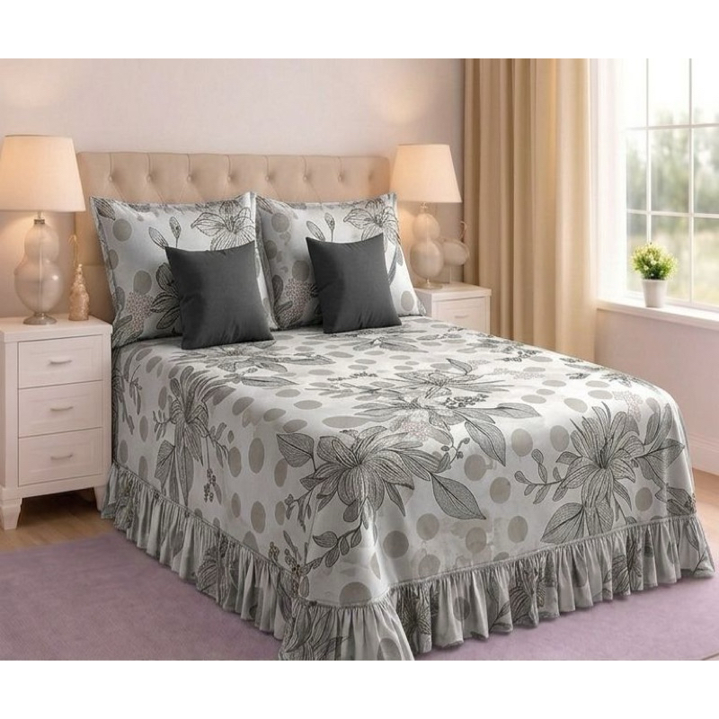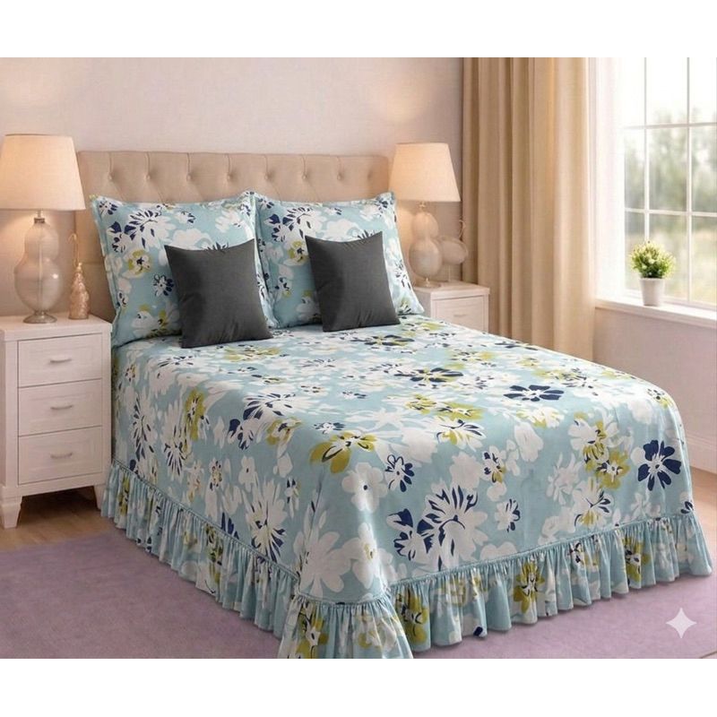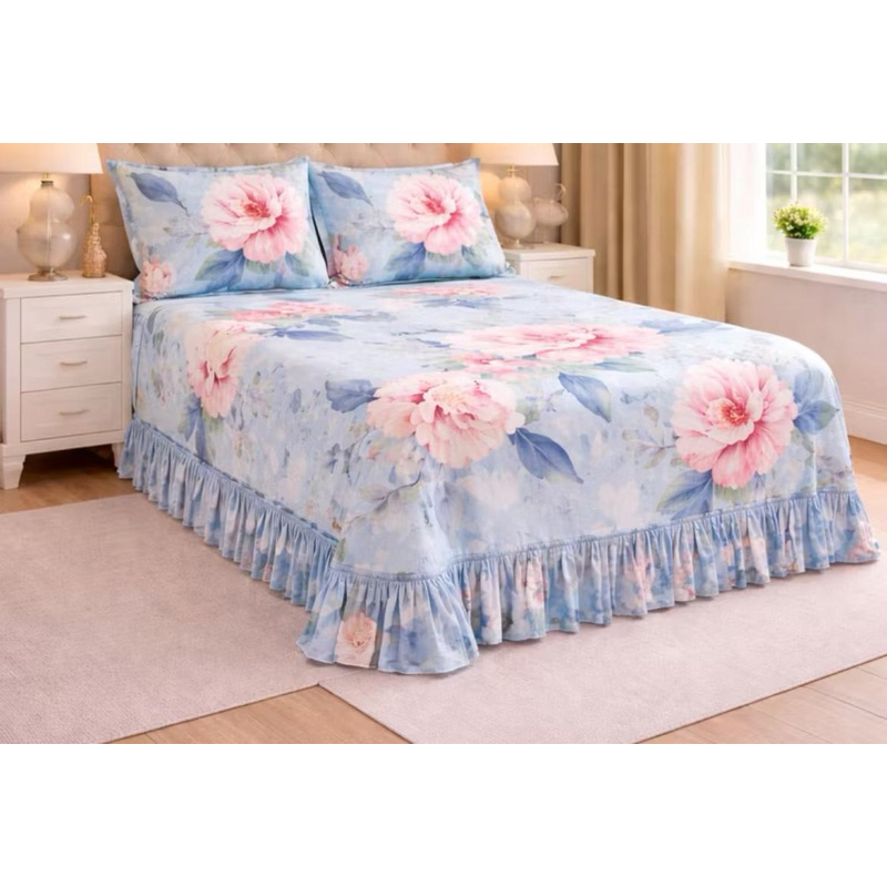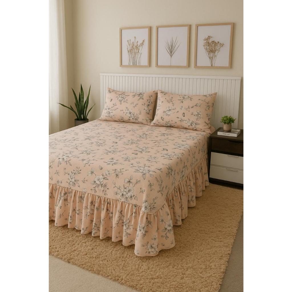 Kit Colcha Lençol com Babado Queen 3 Peças Micropercal Toque de Algodão - Kit Completo com Fronhas