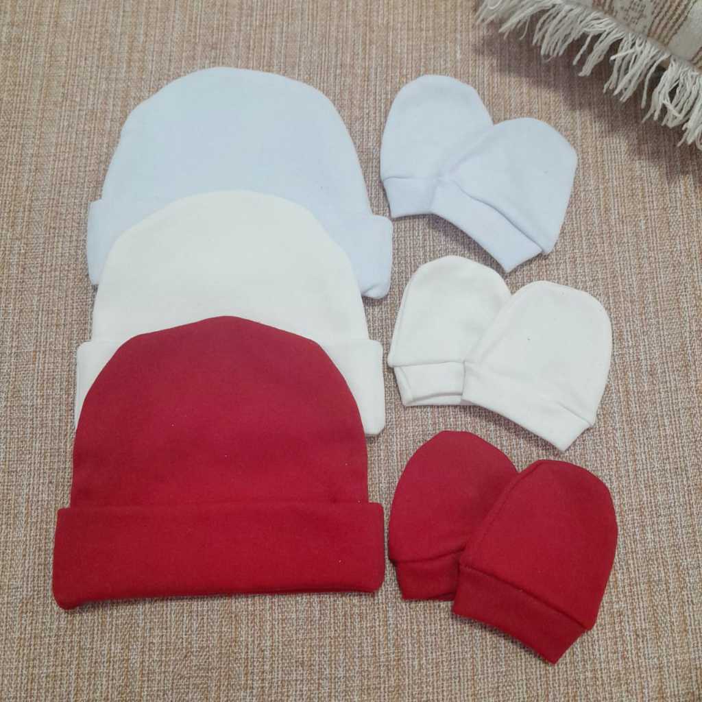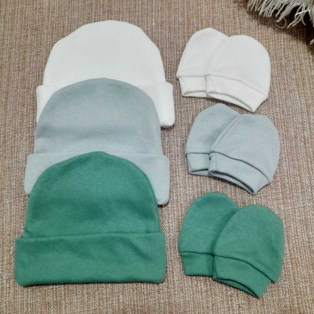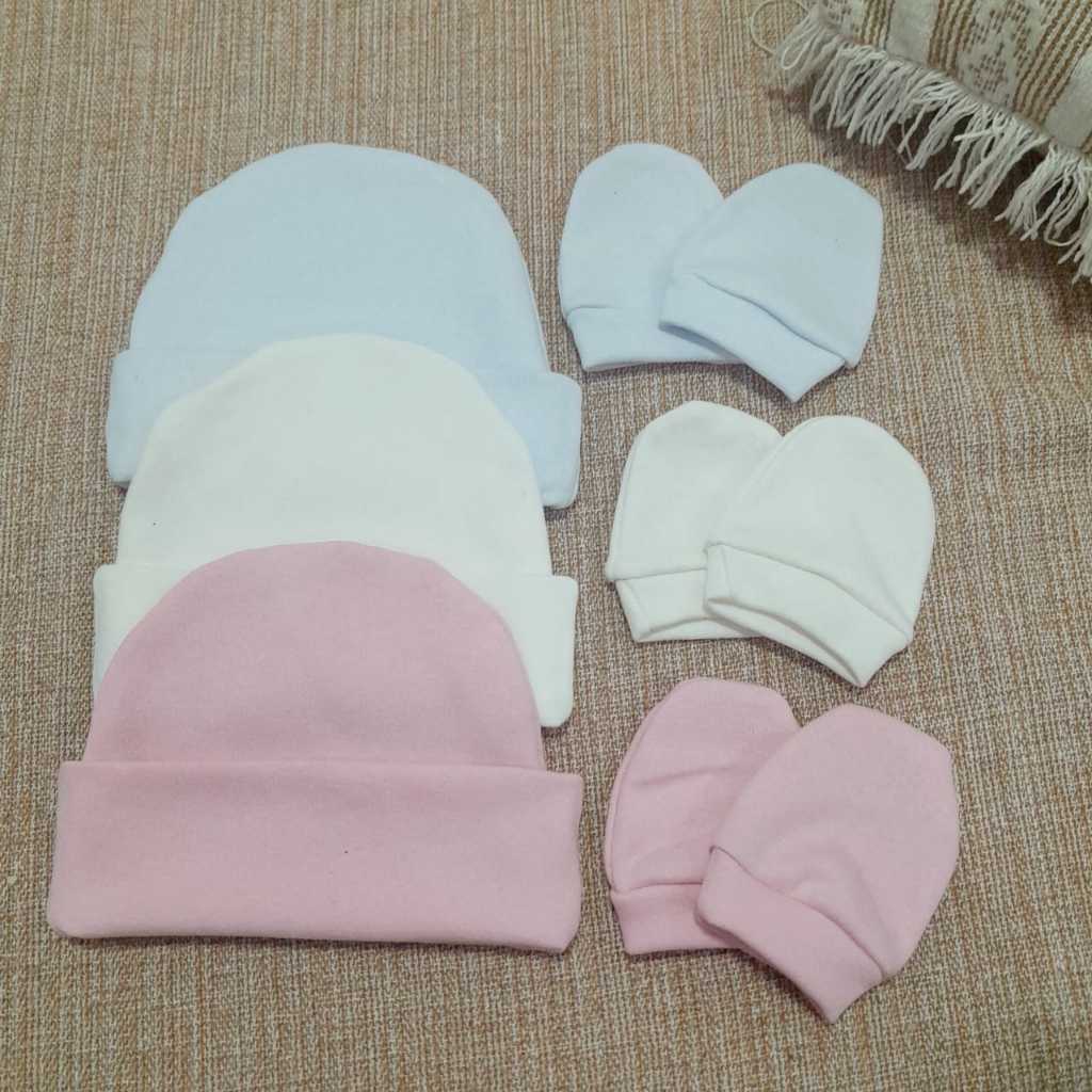 Kit 3 Touca e 3 Luva para bebê 100% algodão antialérgico.