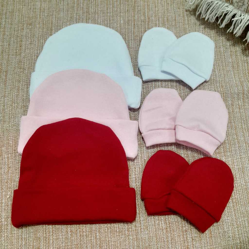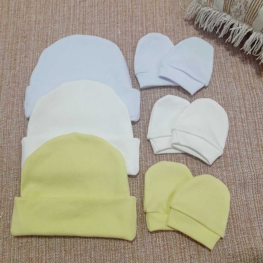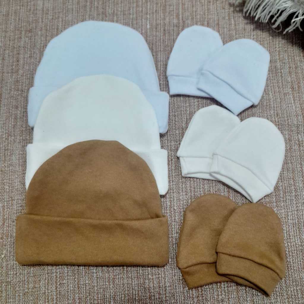 Kit 3 Touca e 3 Luva para bebê 100% algodão antialérgico.