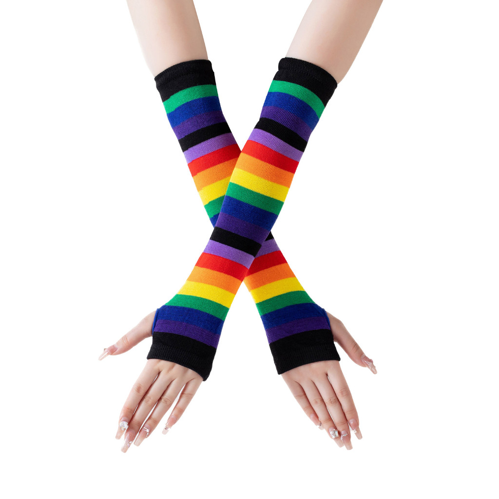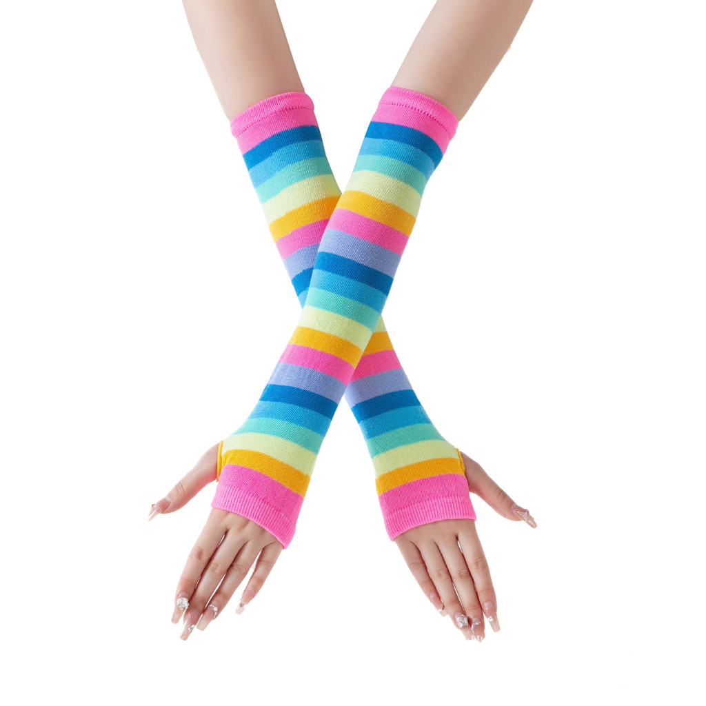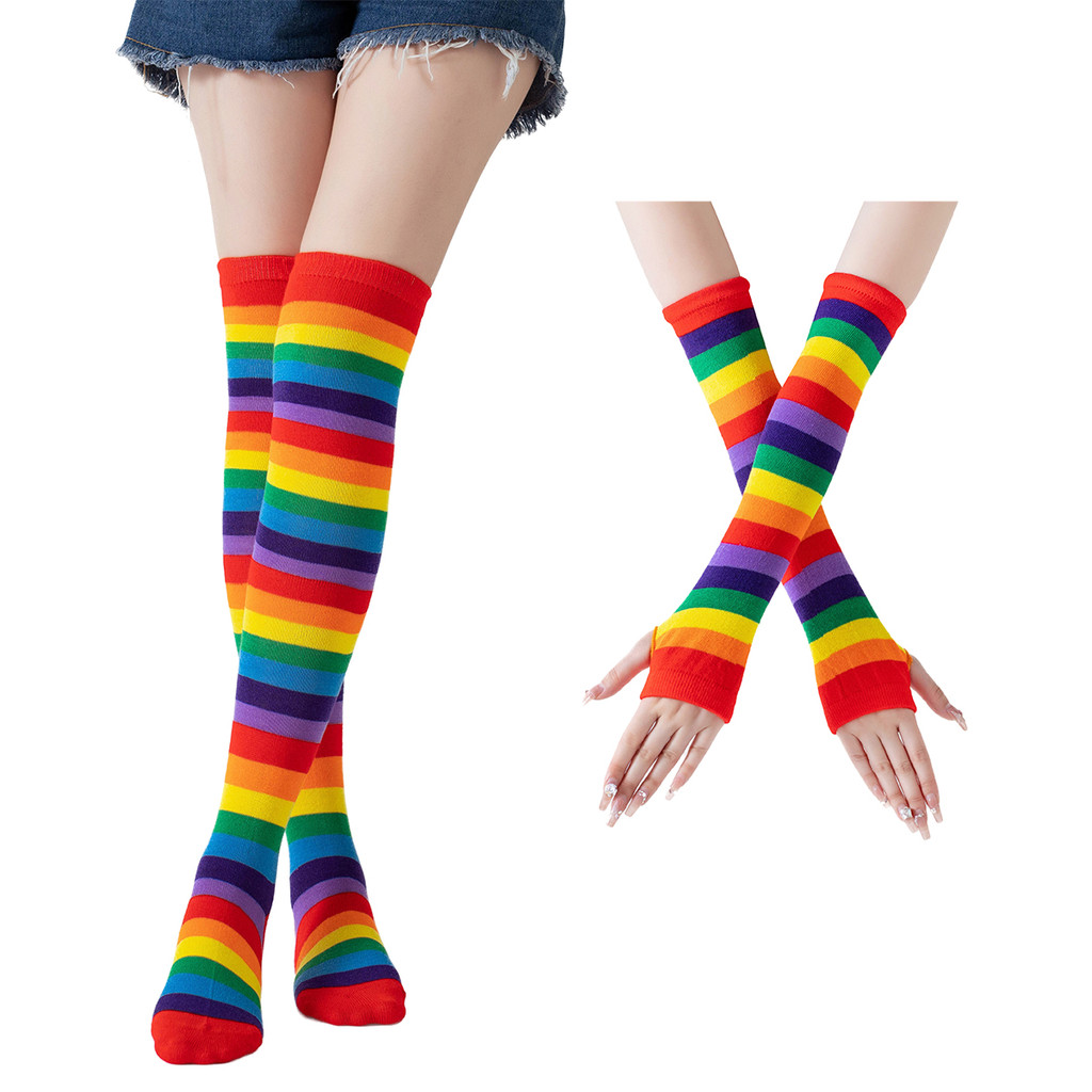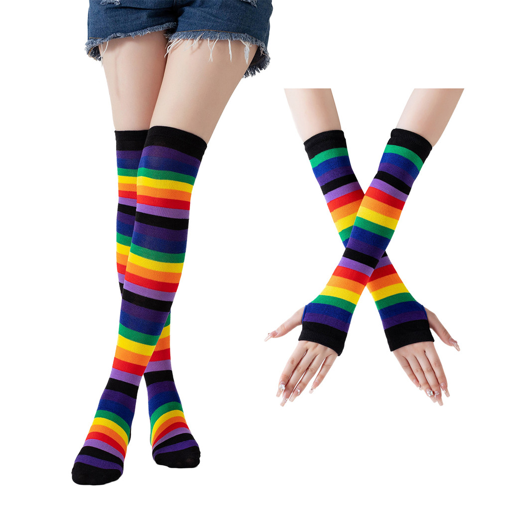 1/2 Pçs Harajuku Cotovelo Comprimento Sem Dedos Braço Manga Mais Quente Arco-Íris Colorido Listrado Traje Luvas E Meias