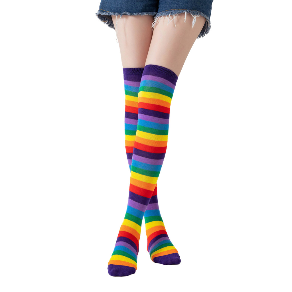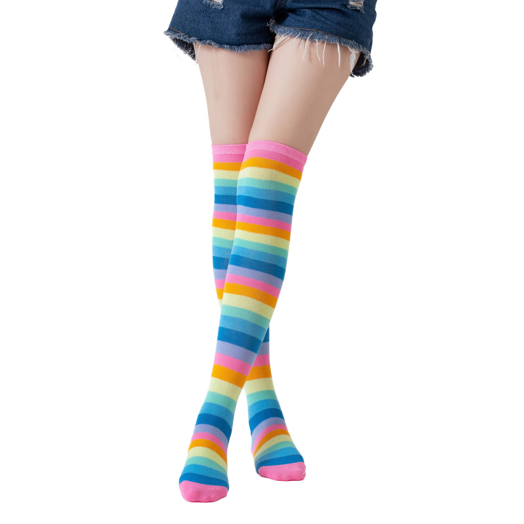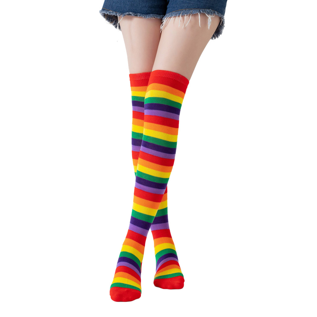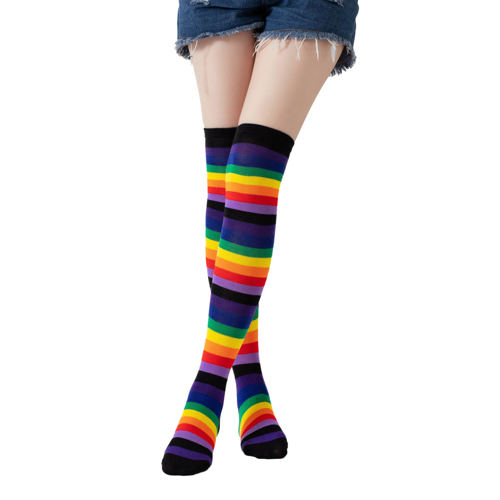 1/2 Pçs Harajuku Cotovelo Comprimento Sem Dedos Braço Manga Mais Quente Arco-Íris Colorido Listrado Traje Luvas E Meias