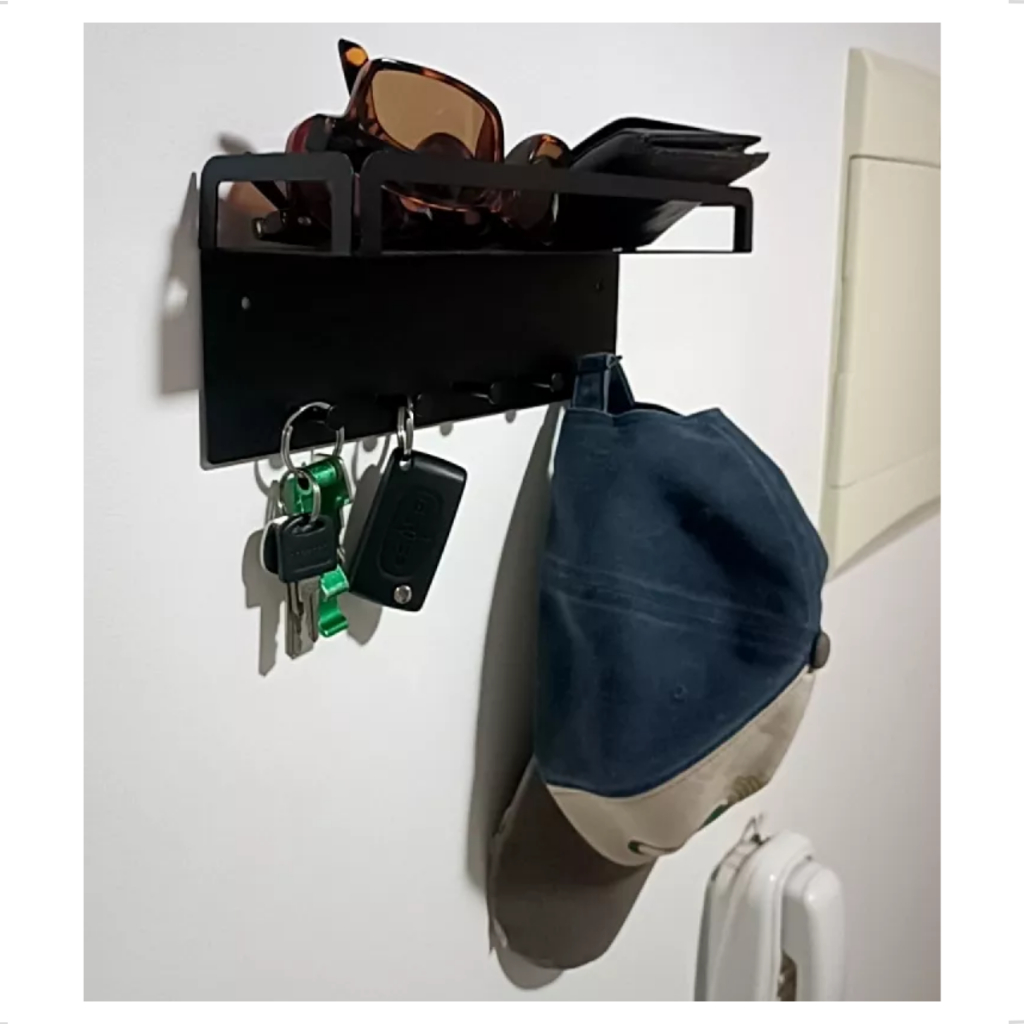 Suporte Porta Chaves de parede preta com Prateleira em Aço Inox Preto 10X26cm 5 Chaves Geguton