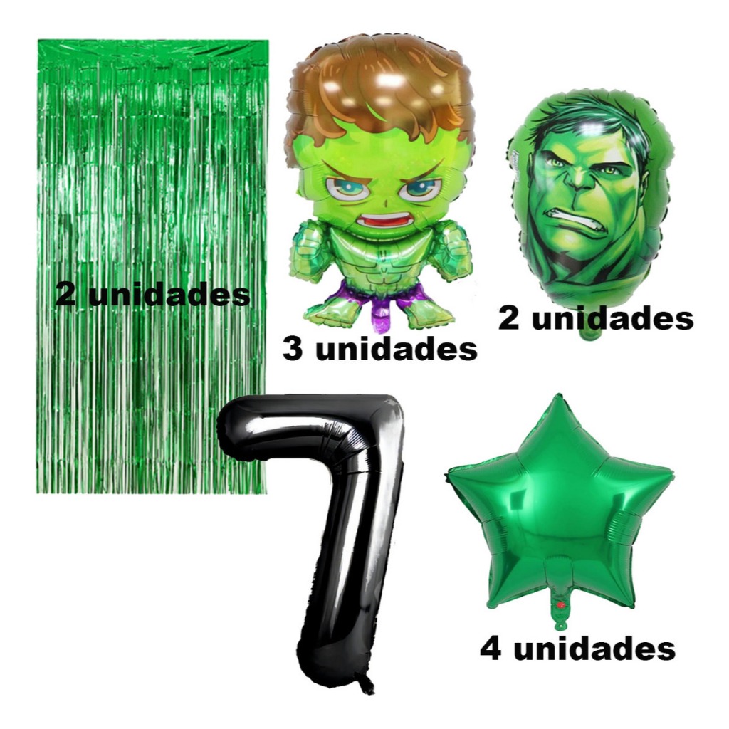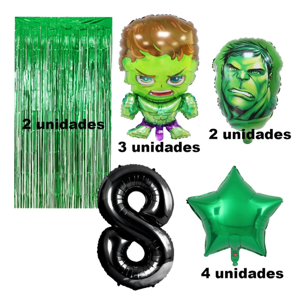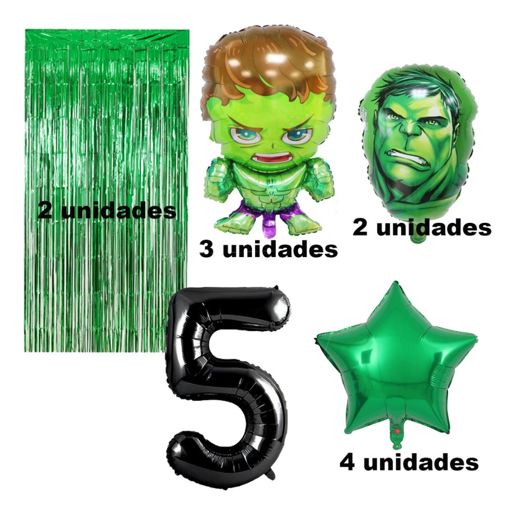 Kit Completo Balão Metalizado Hulk Verde Número Festa Infantil Aniversario Balões Decoração Festa