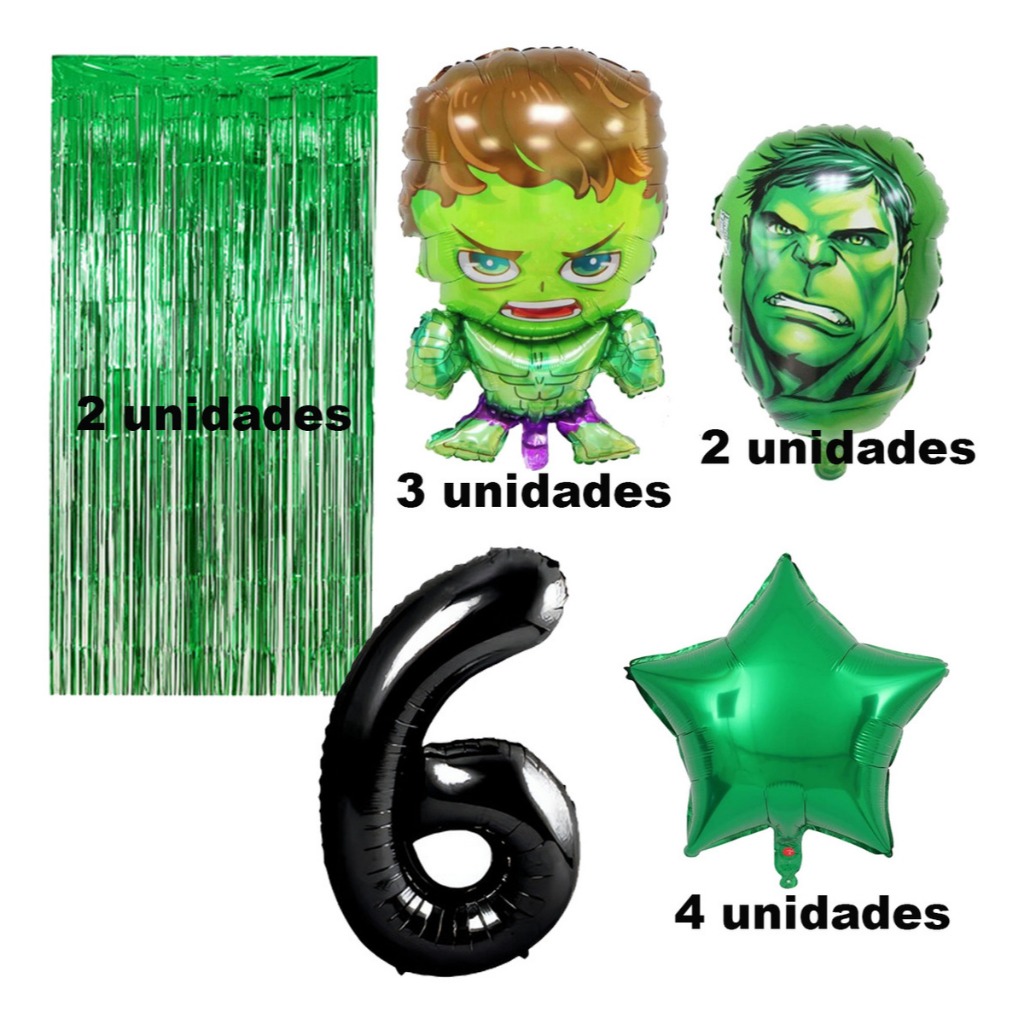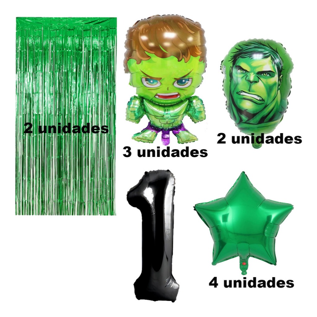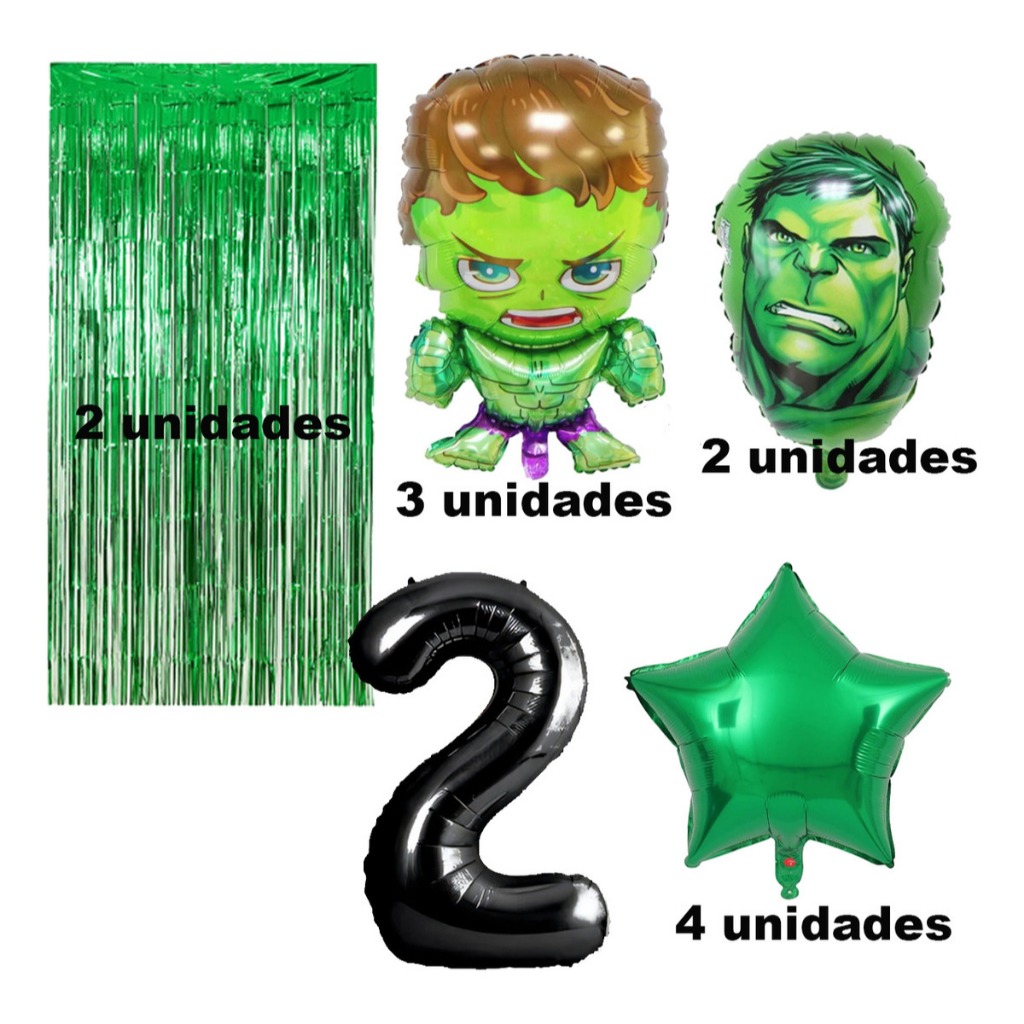 Kit Completo Balão Metalizado Hulk Verde Número Festa Infantil Aniversario Balões Decoração Festa