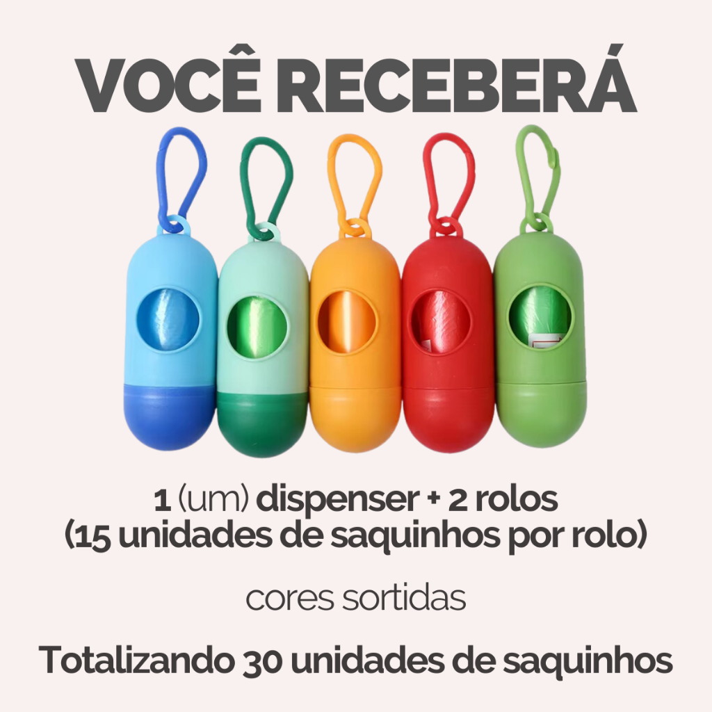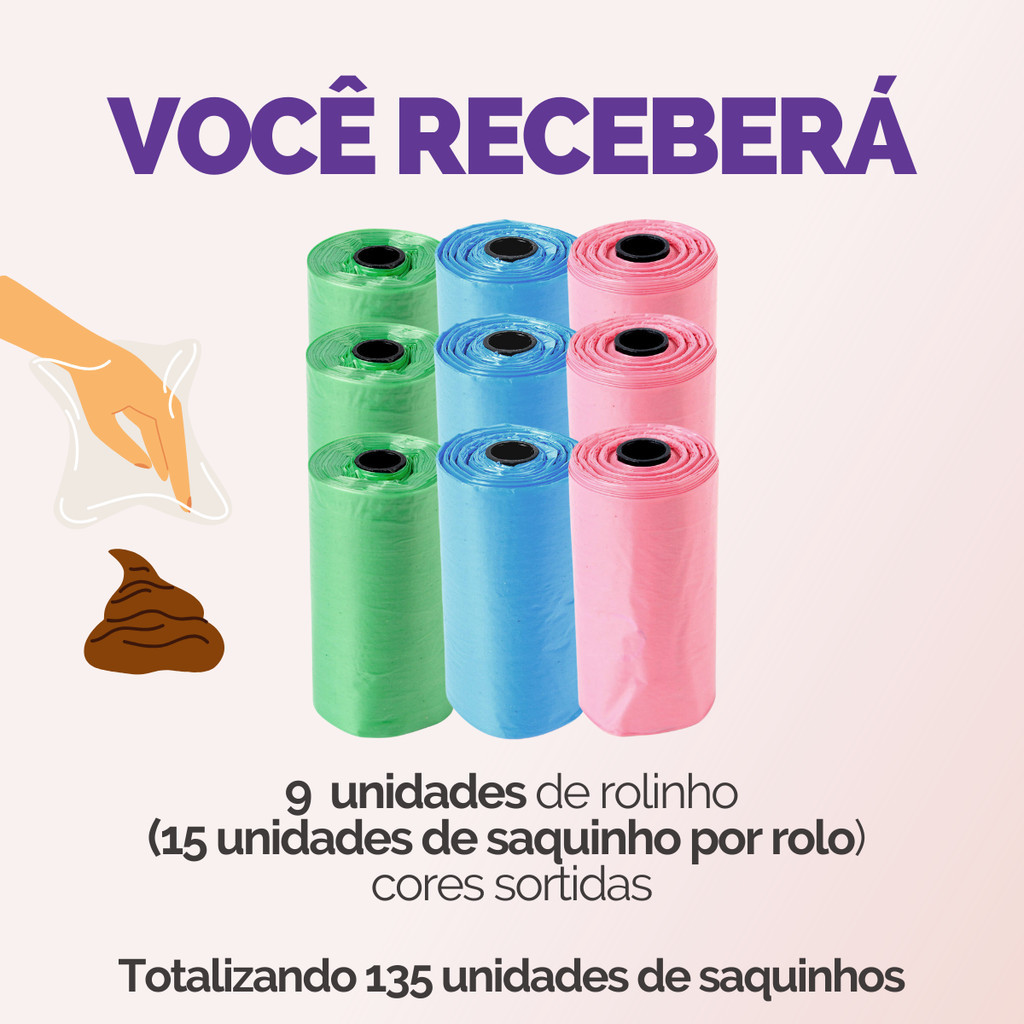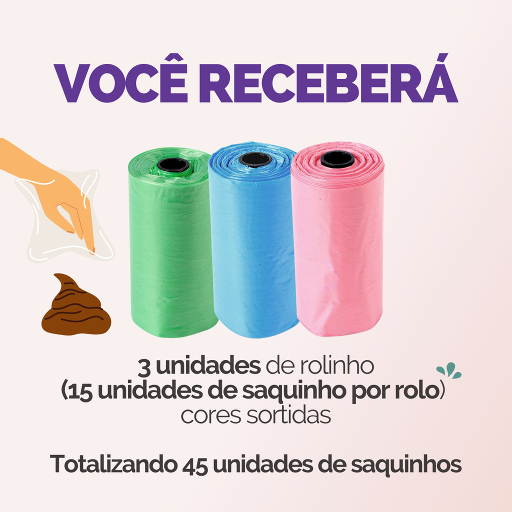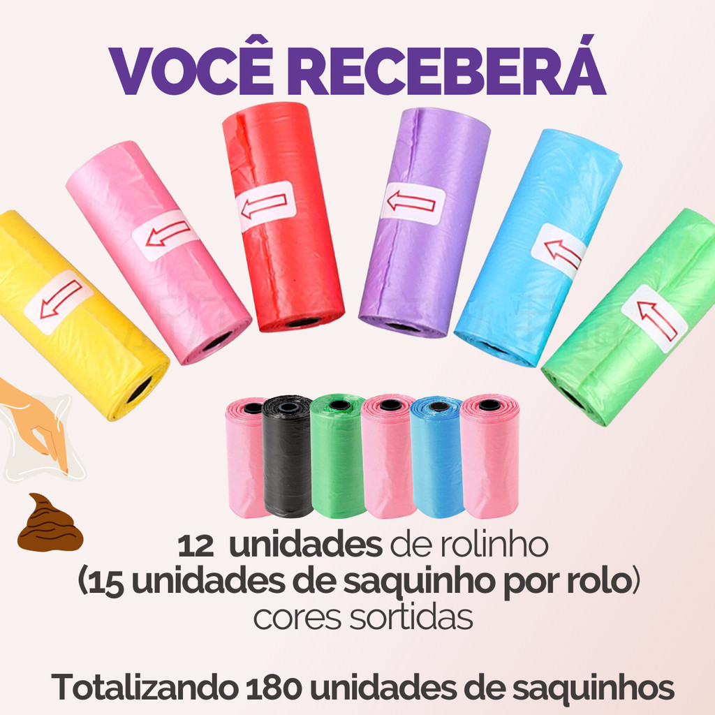 Refil Saco Cata Caca Rolinhos C/ Saquinhos + Suporte Colorido Para Pet Higiênico - Escolha Seu Kit
