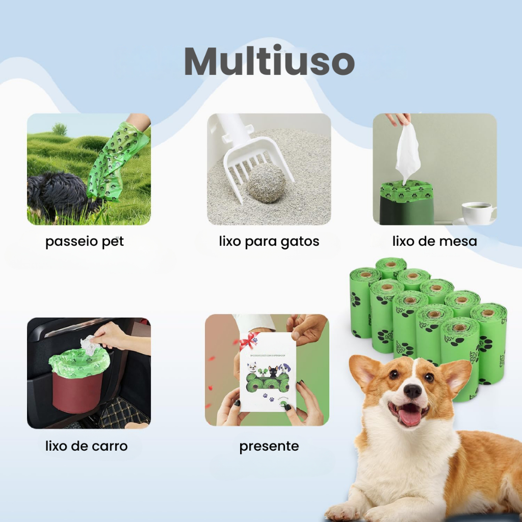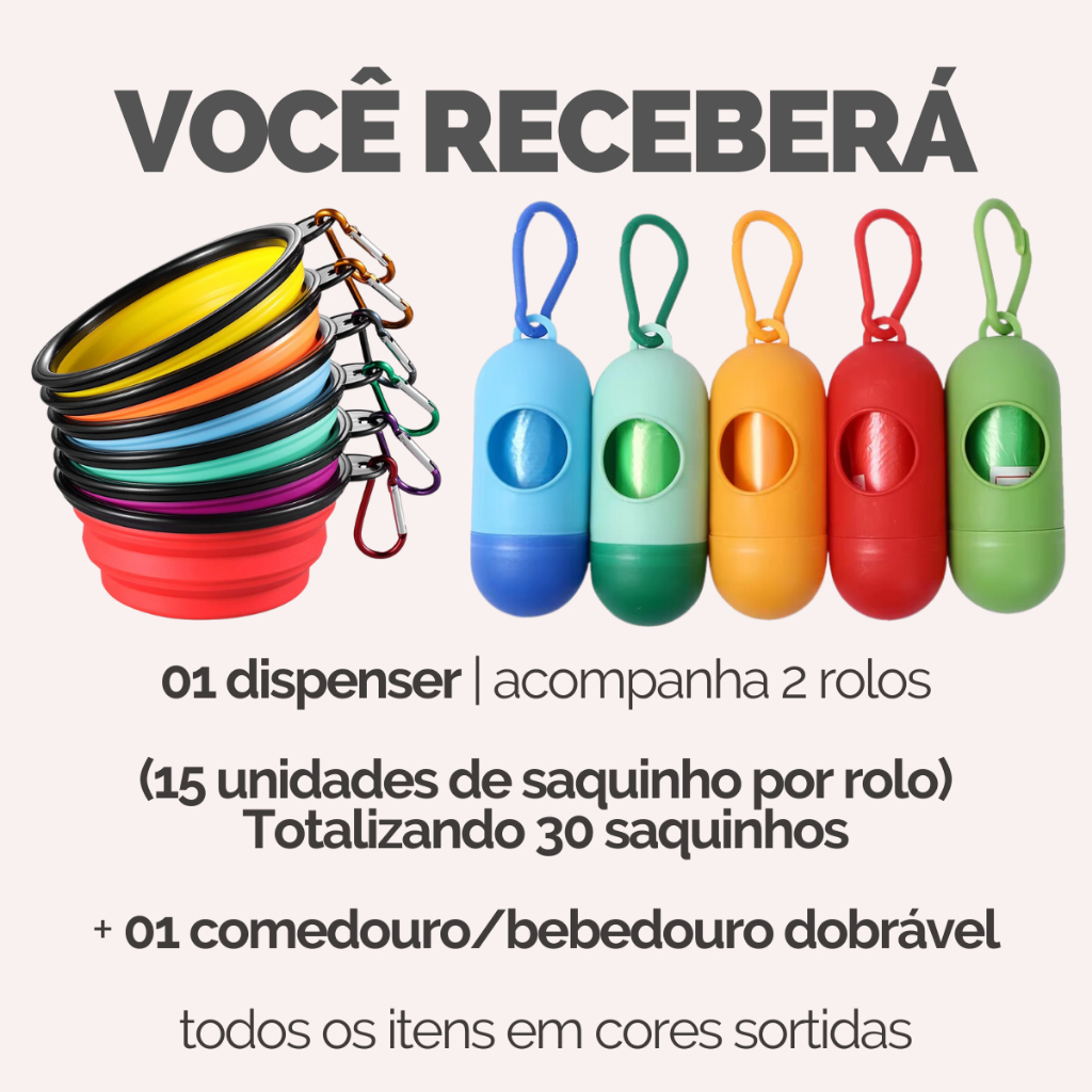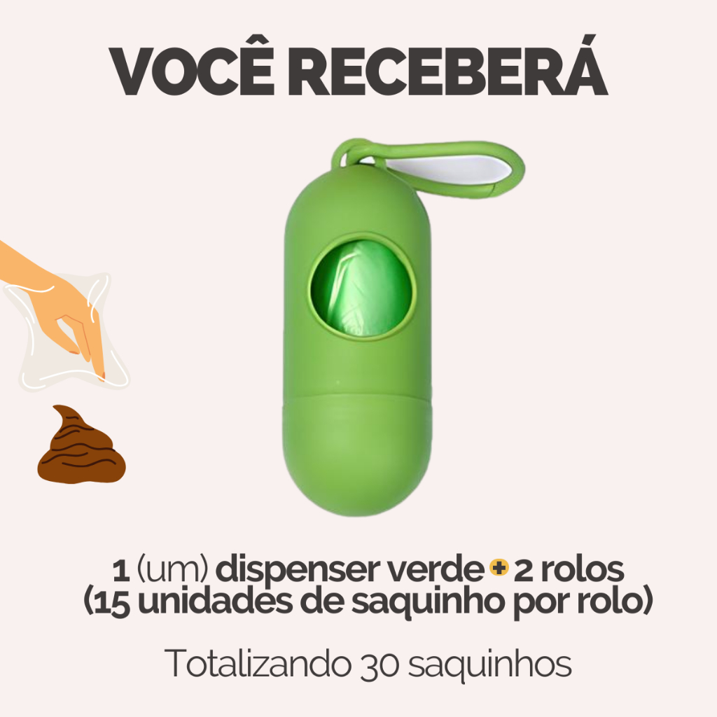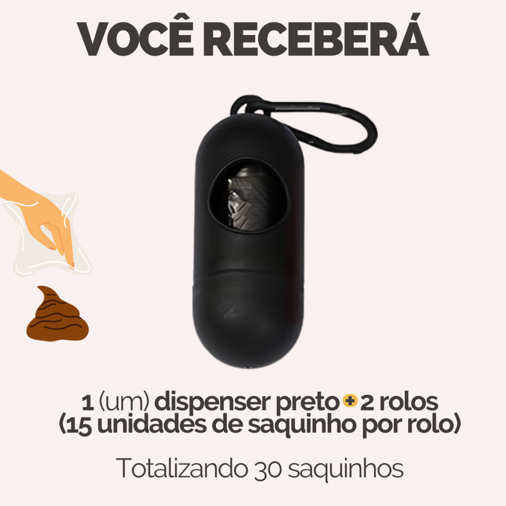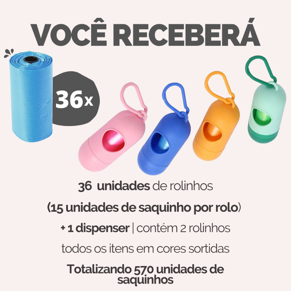 Refil Saco Cata Caca Rolinhos C/ Saquinhos + Suporte Colorido Para Pet Higiênico - Escolha Seu Kit