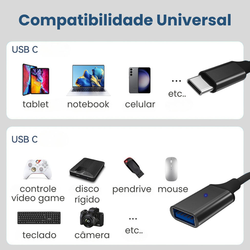 Cabo Adaptador Otg Tipo C Para USB Conecta Mouse Teclado Pen Drive - Escolha Seu Kit