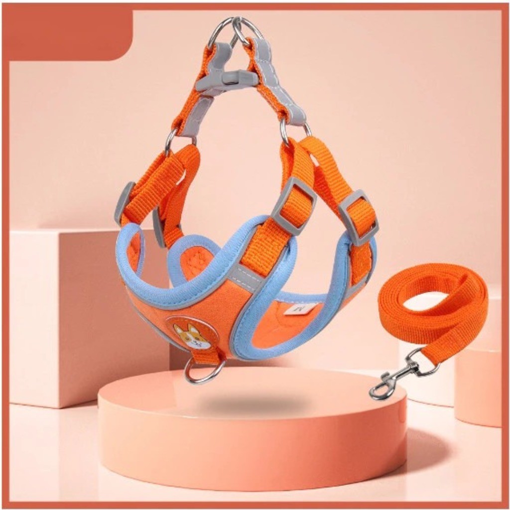 Coleira Peitoral para cachorro pequenos e médios com guia para pet colete confortável