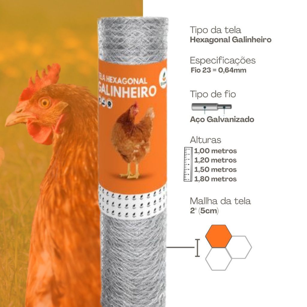 Tela Galinheiro 1,50 x 35 Metros Fio 23 Arame Galvanizado - Galinheiro, Horta, Jardim