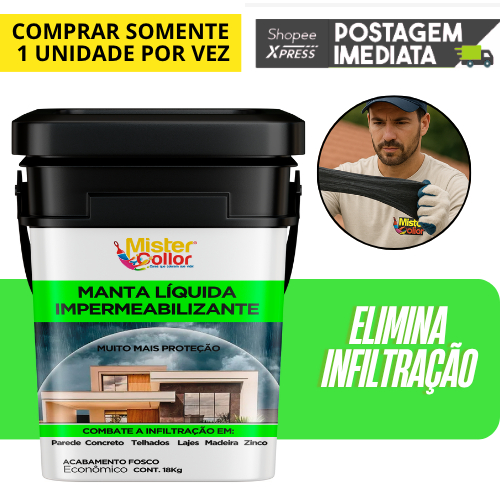 Manta Liquida 18Kg emborrachada paredes lajes telhados pisos
