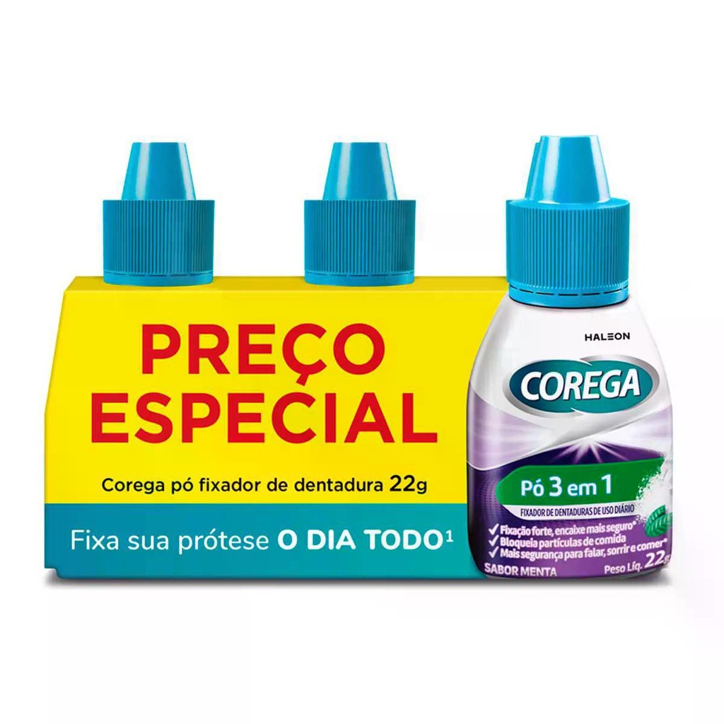 Kit Corega Fixador De Dentadura Em Pó 3 Unidades De 22g Cada