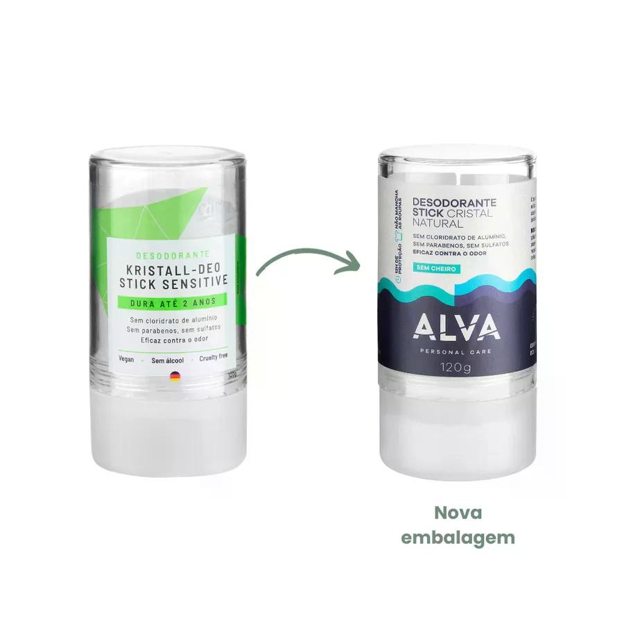 2 Un Alva Cristal Natural Desodorante Stick Com 120g Cada