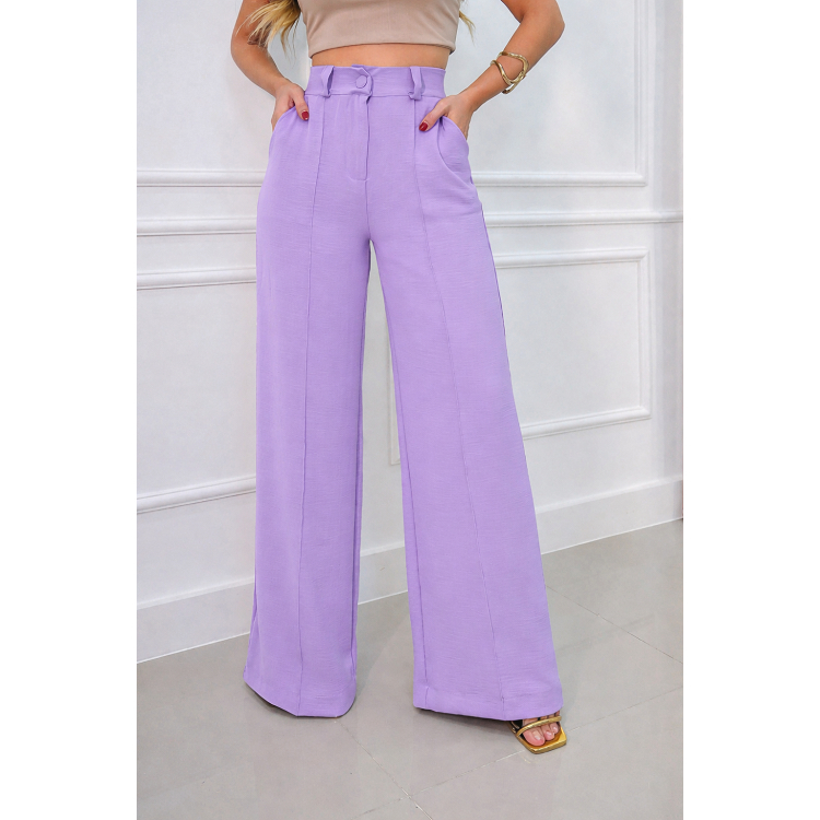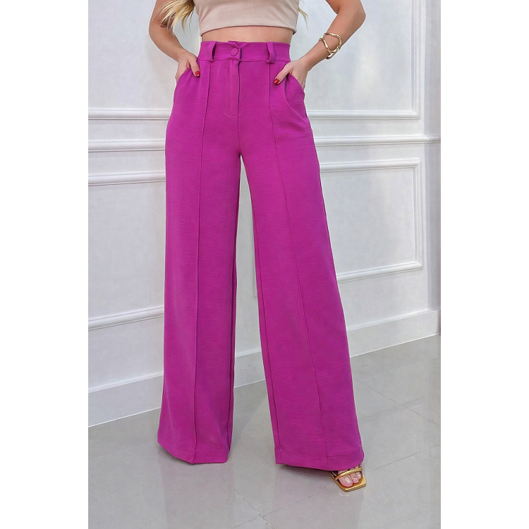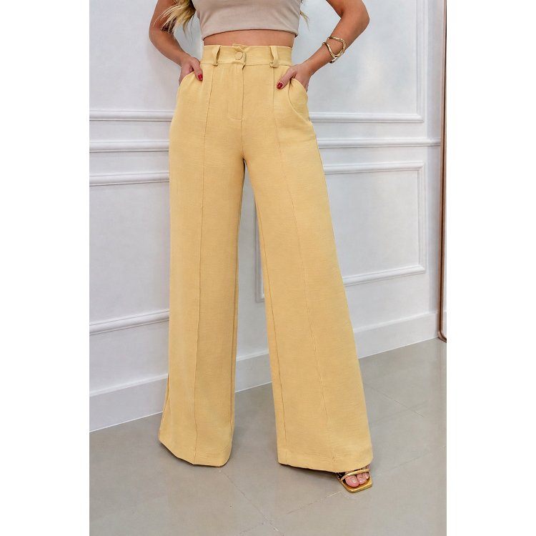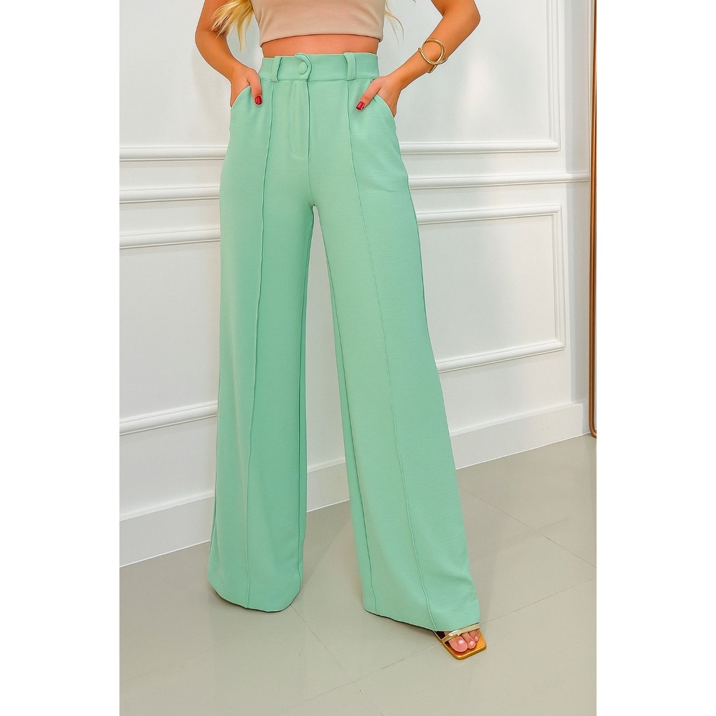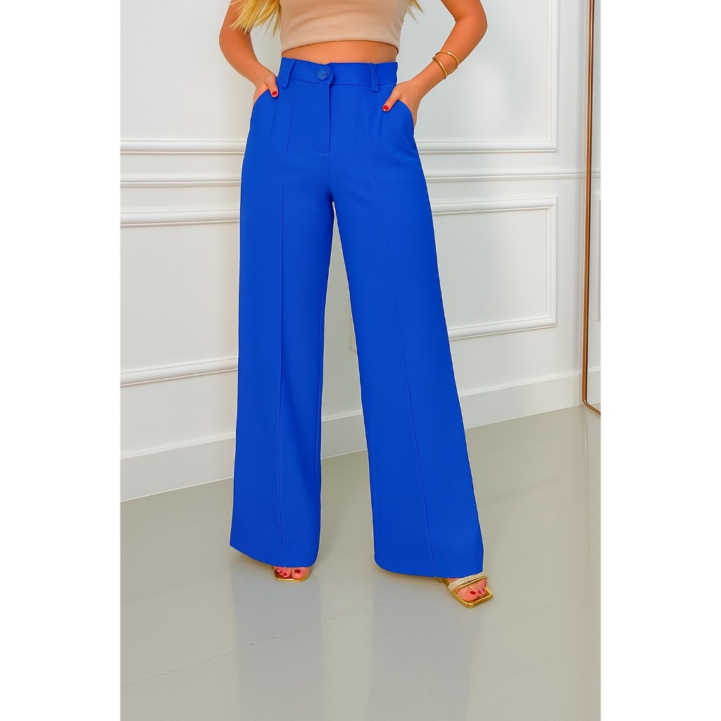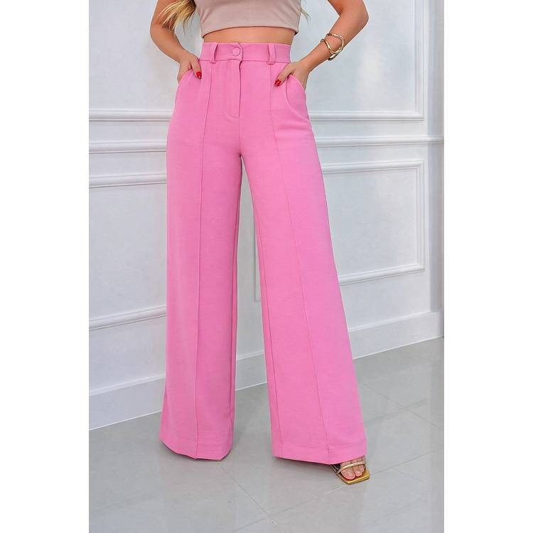 Calça Pantalona Feminina Cintura Alta com Bolso e Zíper Tecido Duna | Tendência 2026