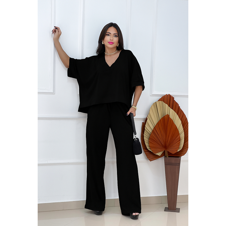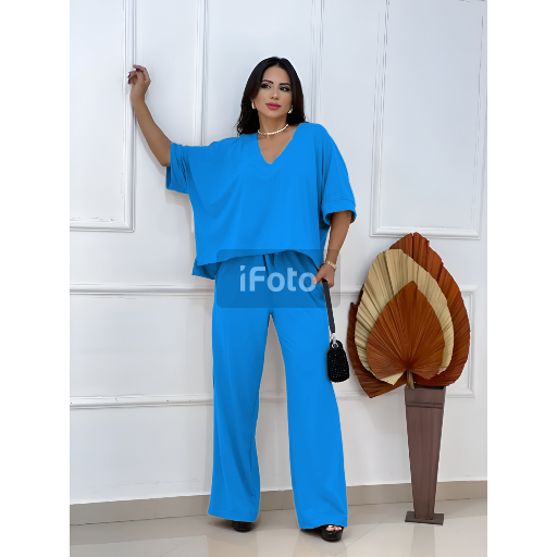 Conjunto Feminino Confortavel Malha Viscolycra Blusa Oversized e Calça Pantalona com Bolsos