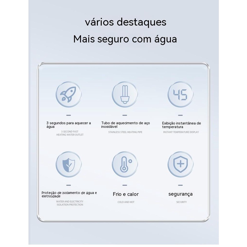 Torneira de Água Quente Elétrica 110v Tipo Instantânea de Água Quente de Três Segundos Torneira de Água Quente Rápida de Instalação - Torneira de Display Digital Conectada Sem Conexão