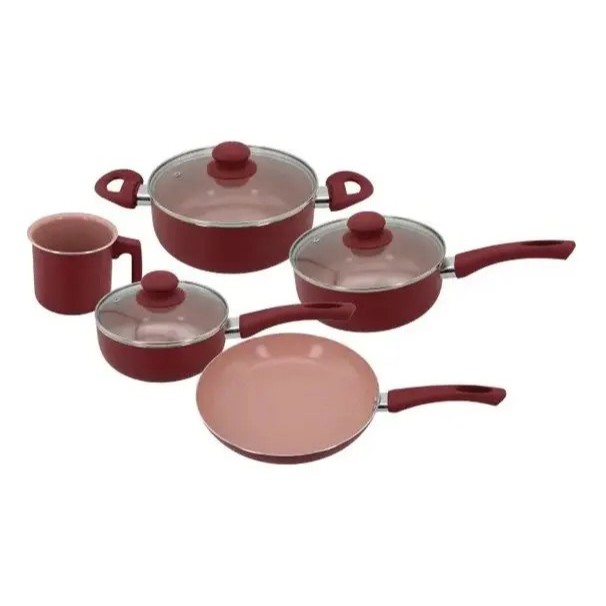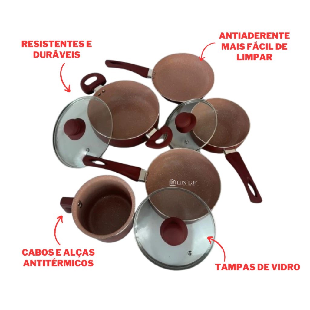 Conjunto de Panelas Fascinio com Revestimento de Cerâmica Antiaderente com Tampa de Vidro Fogão de Indução Gás