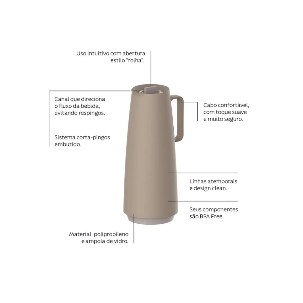 Bule Térmico Tramontina Café e Chá 1L Garrafa Qualidade Plástico Premium Quente por Horas
