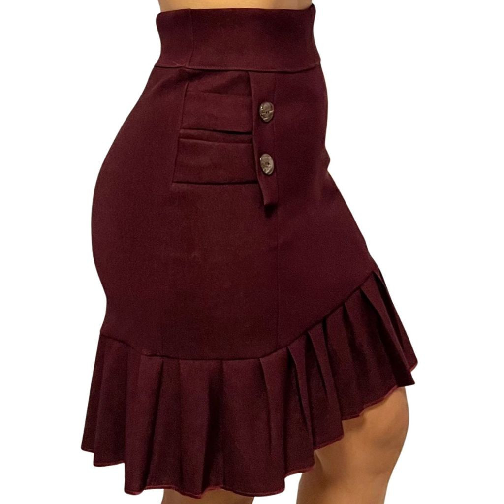 Saia Feminina Em Bengaline Detalhe Botões E Babadinho