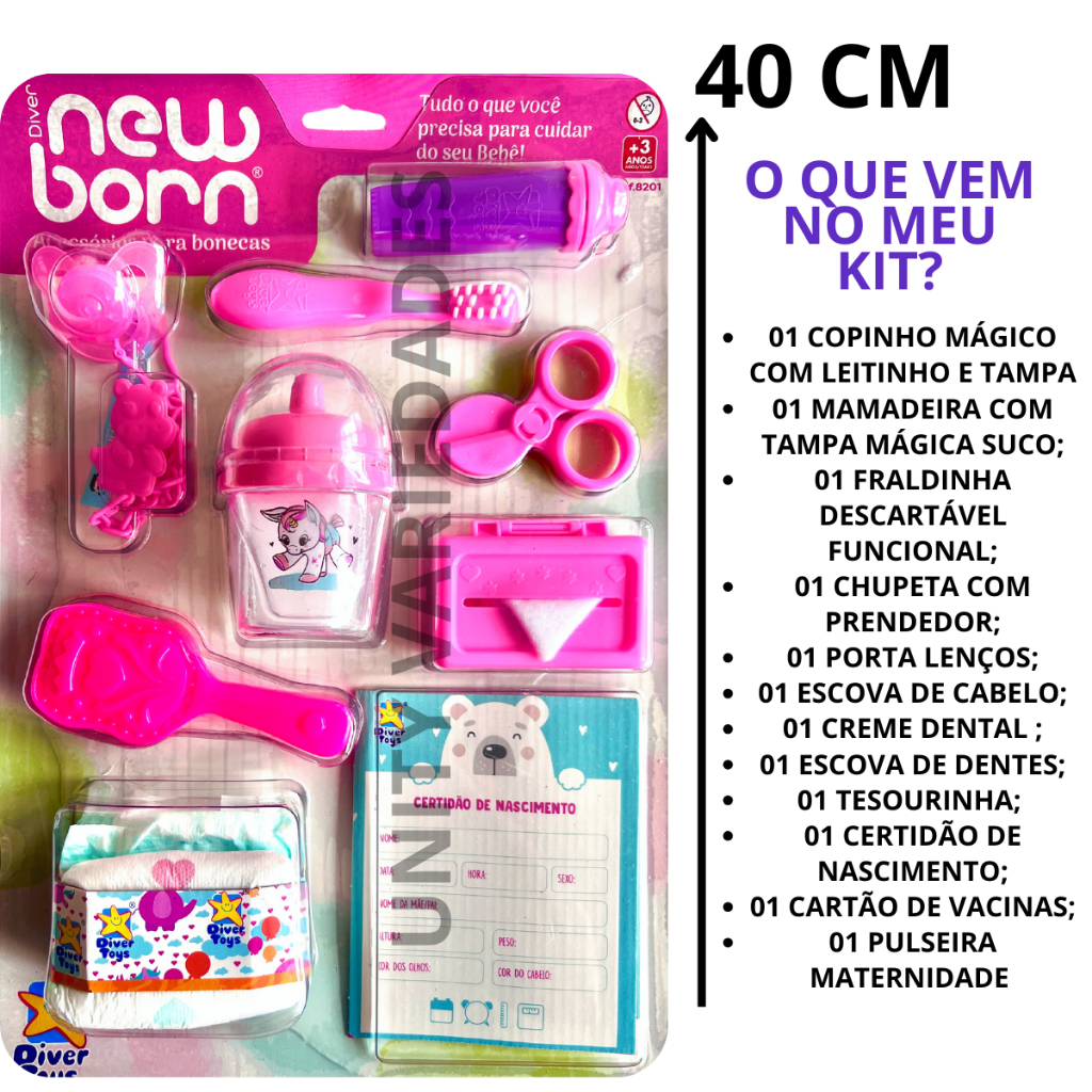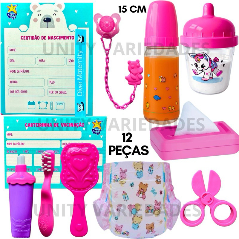 Brinquedo Menina Acessórios Bebê Reborn Kit 12 Pcs Boneca Mamadeira Fralda Bonecas 6 Anos Presente