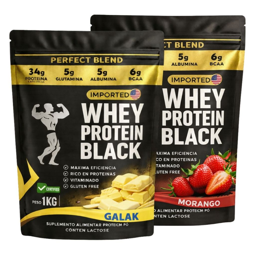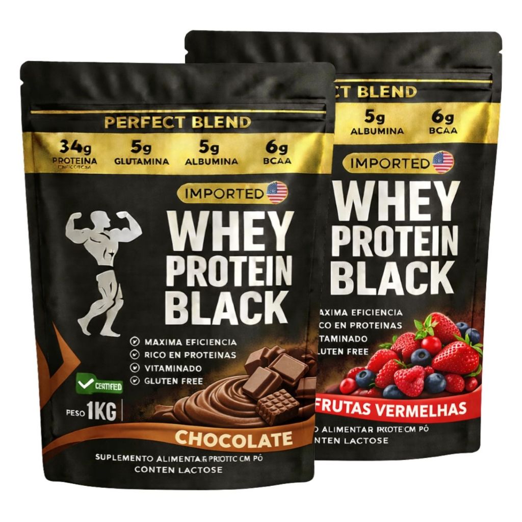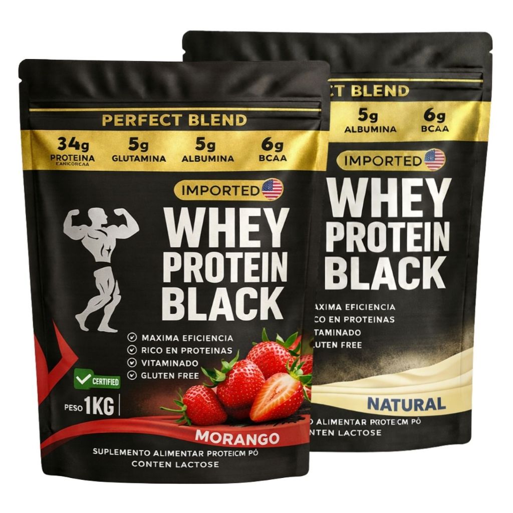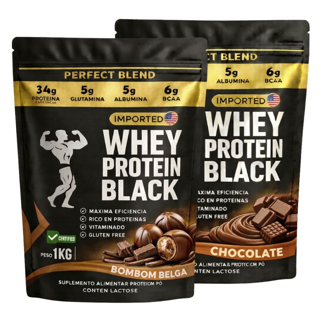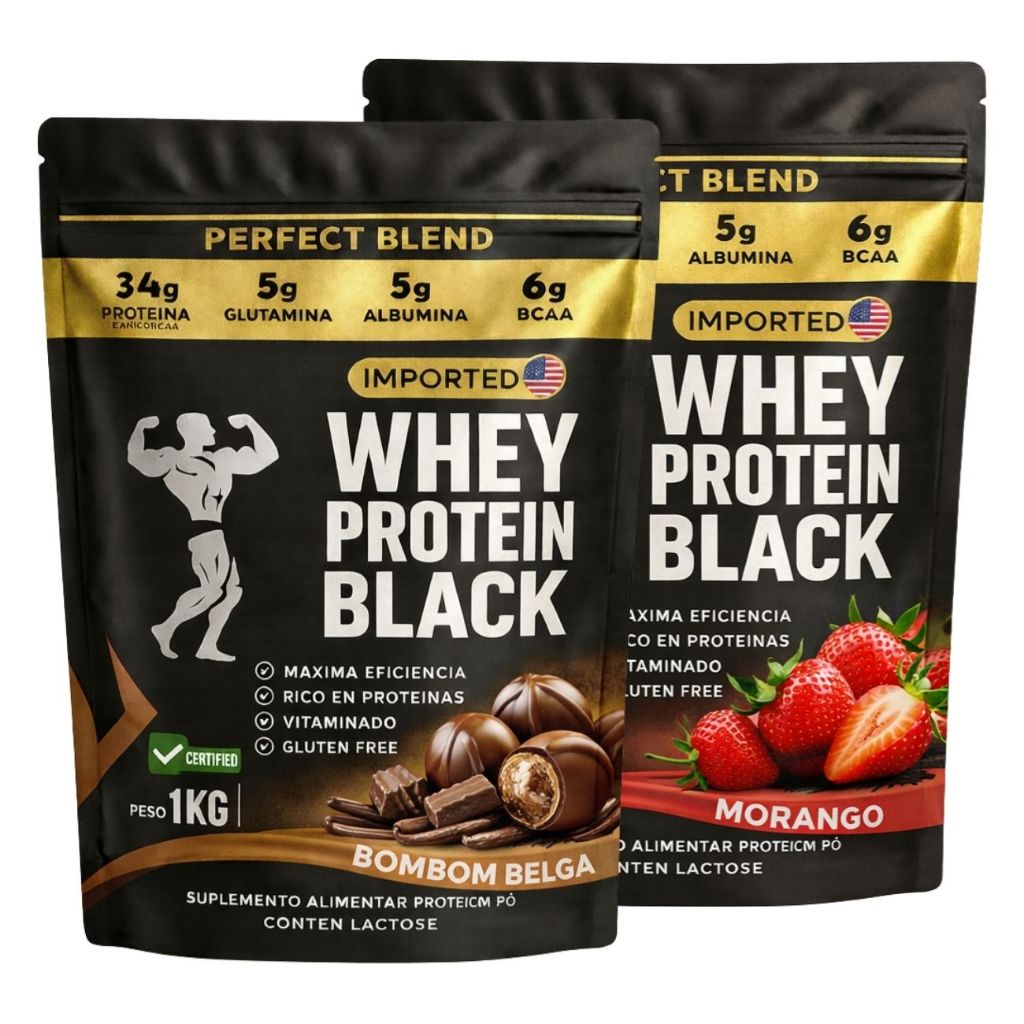 KIT 2x Whey Protein Isolado - Sachê de 1kg - Escolhe entre 2 sabores - Proteína para Ganho de Massa