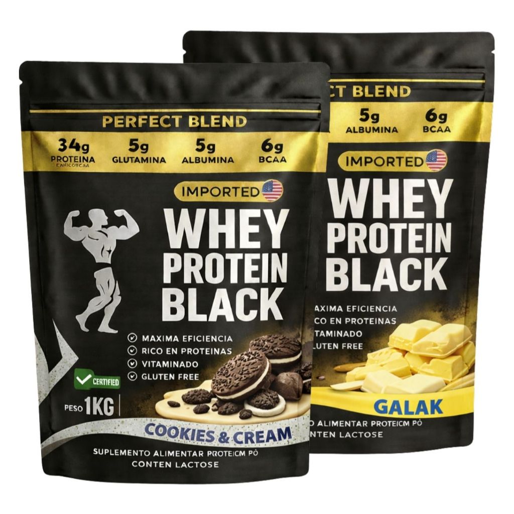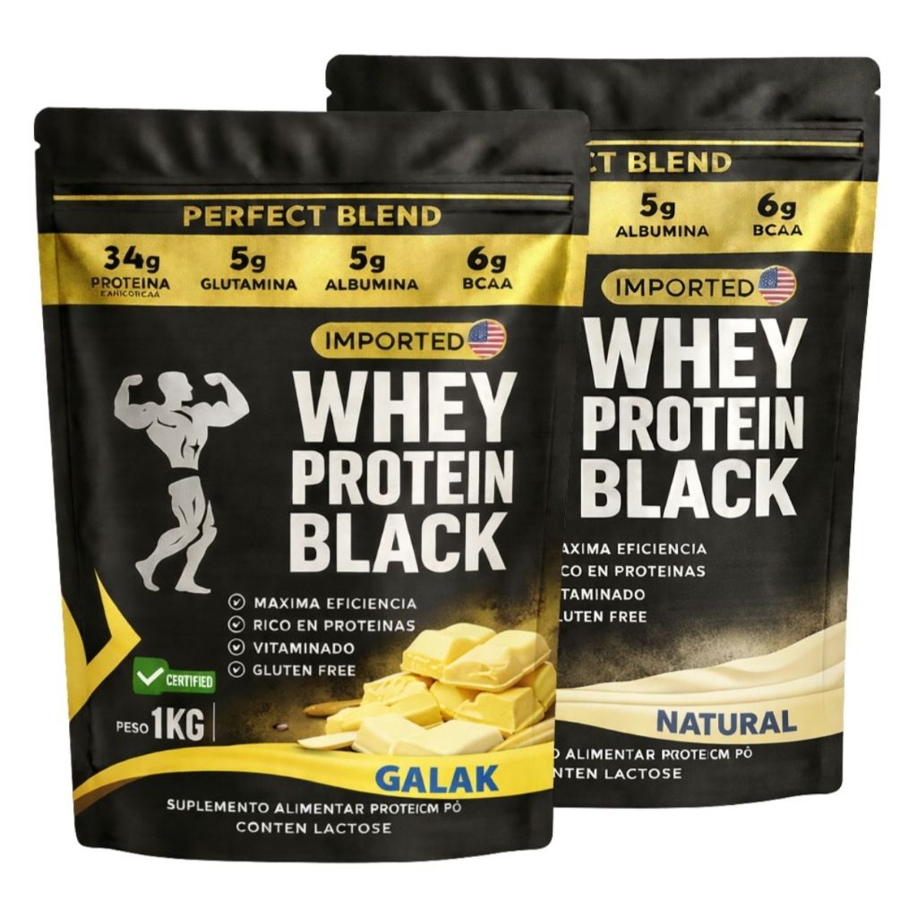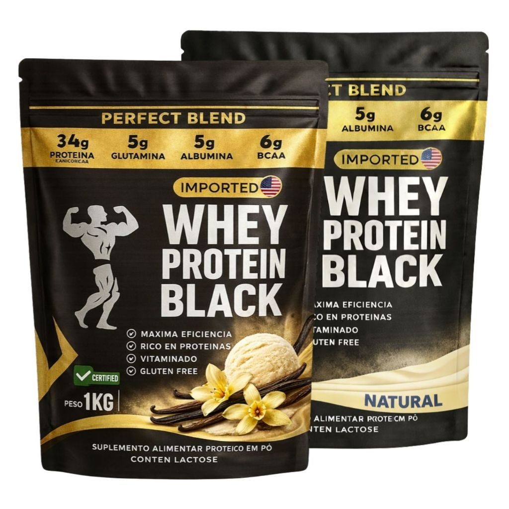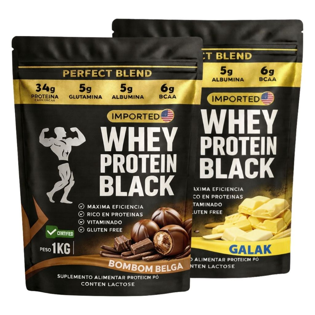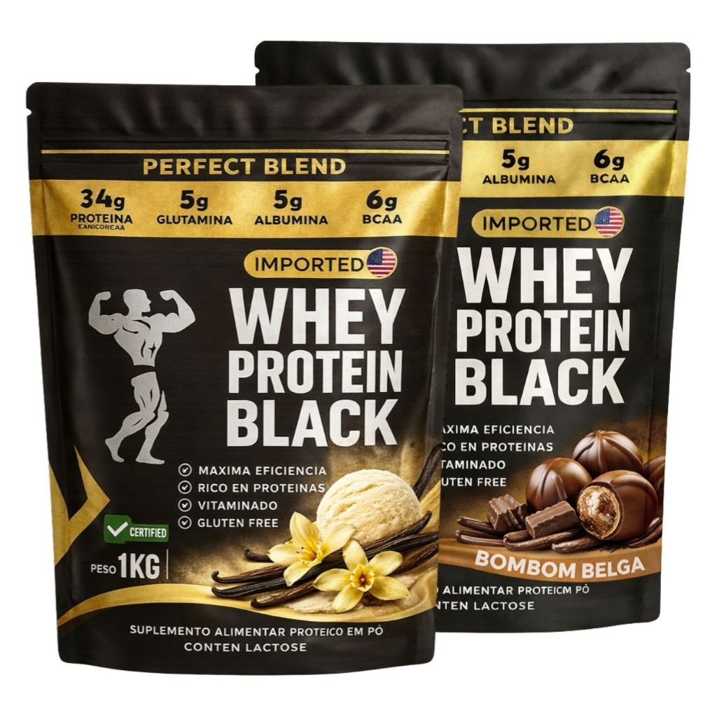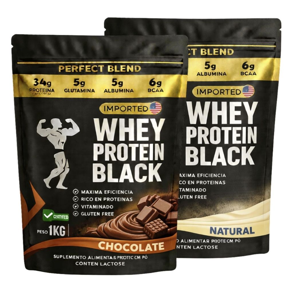 KIT 2x Whey Protein Isolado - Sachê de 1kg - Escolhe entre 2 sabores - Proteína para Ganho de Massa