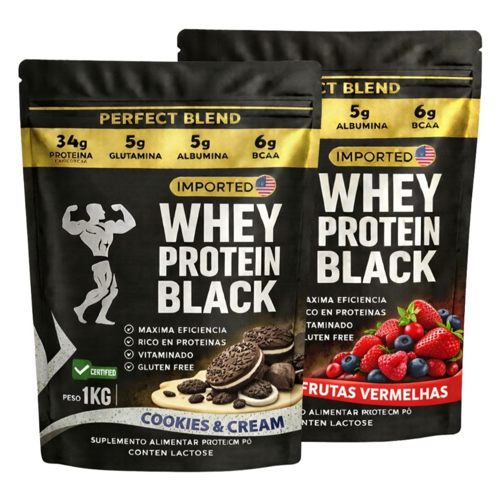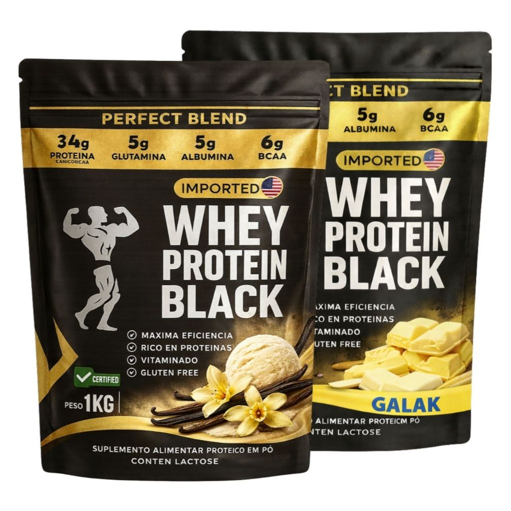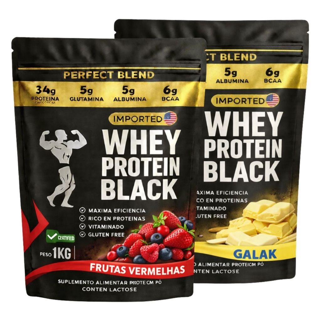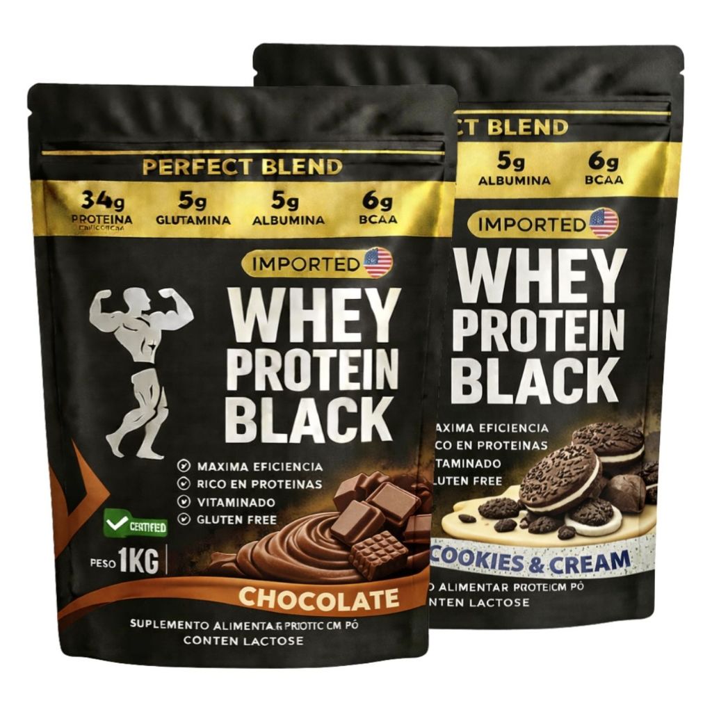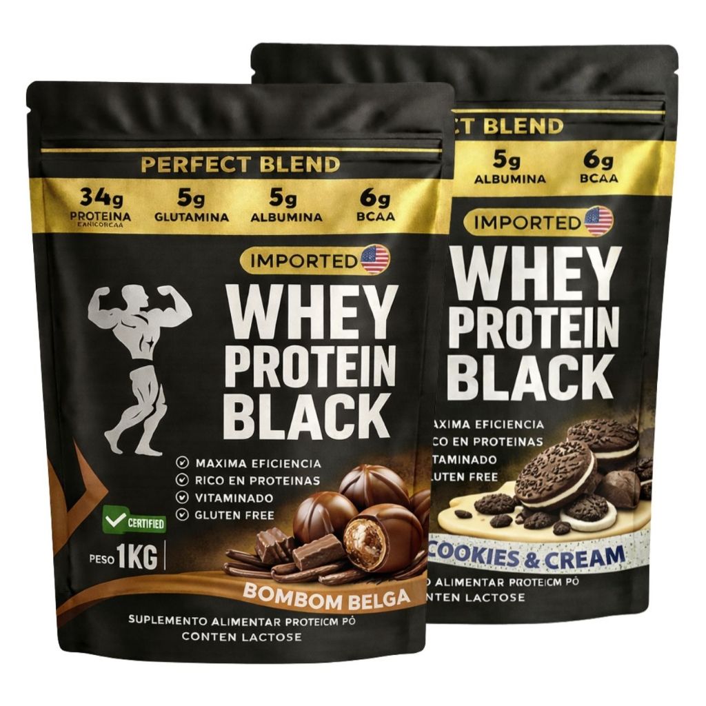 KIT 2x Whey Protein Isolado - Sachê de 1kg - Escolhe entre 2 sabores - Proteína para Ganho de Massa