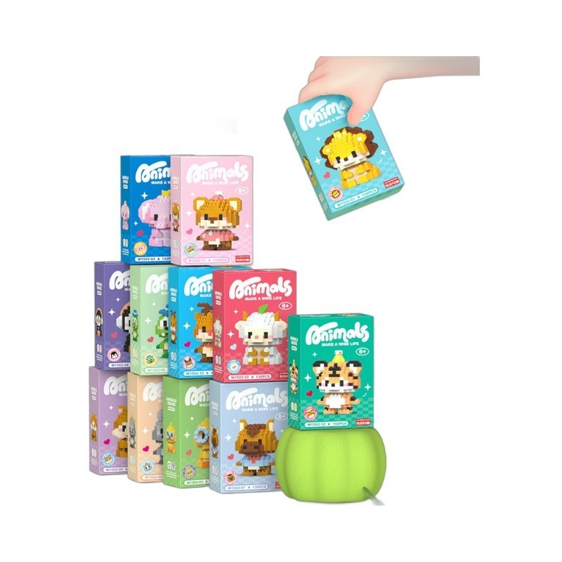 Pequenos blocos de construção de animais Desenhos animados Dia dos Brinquedos de Montagem Educacional 6 Brinquedos de Presente