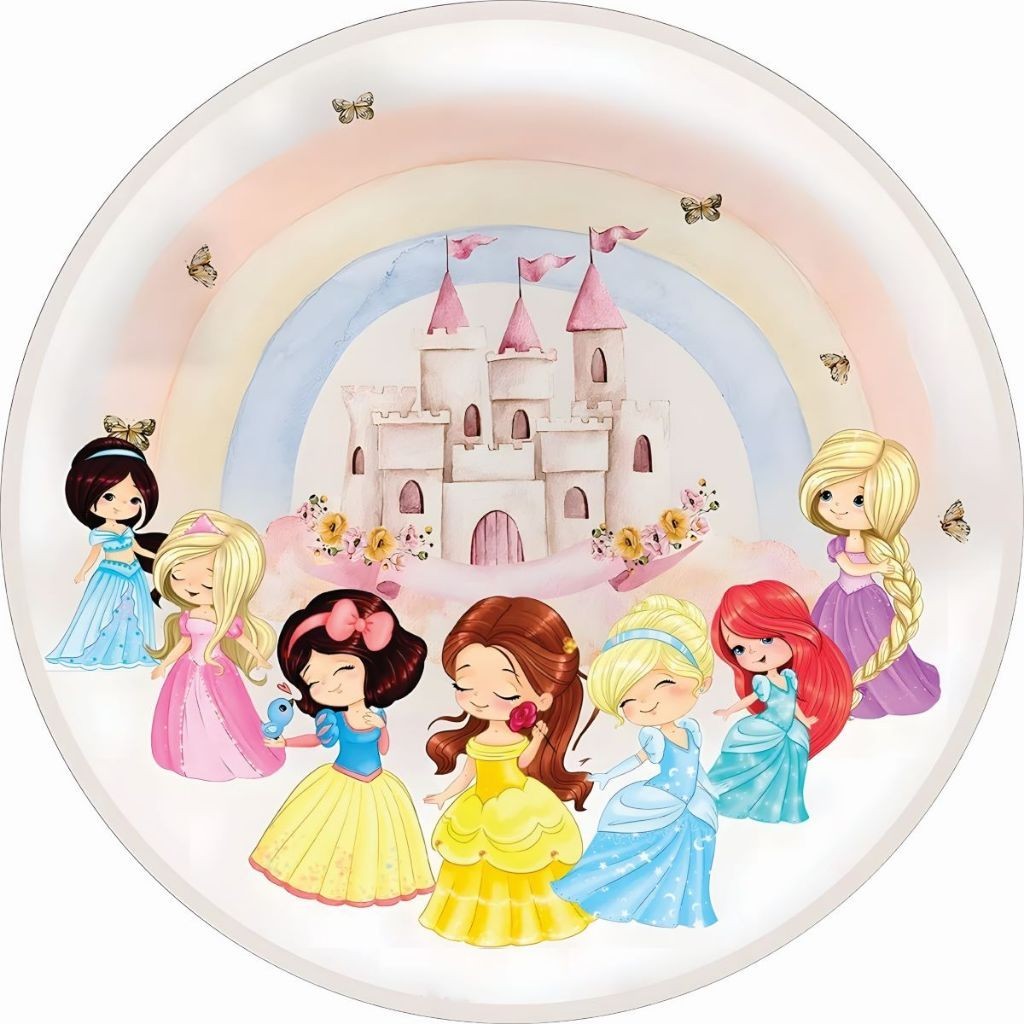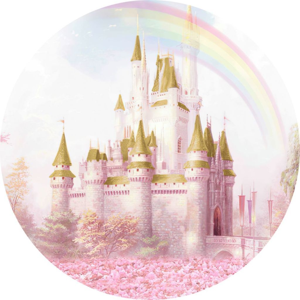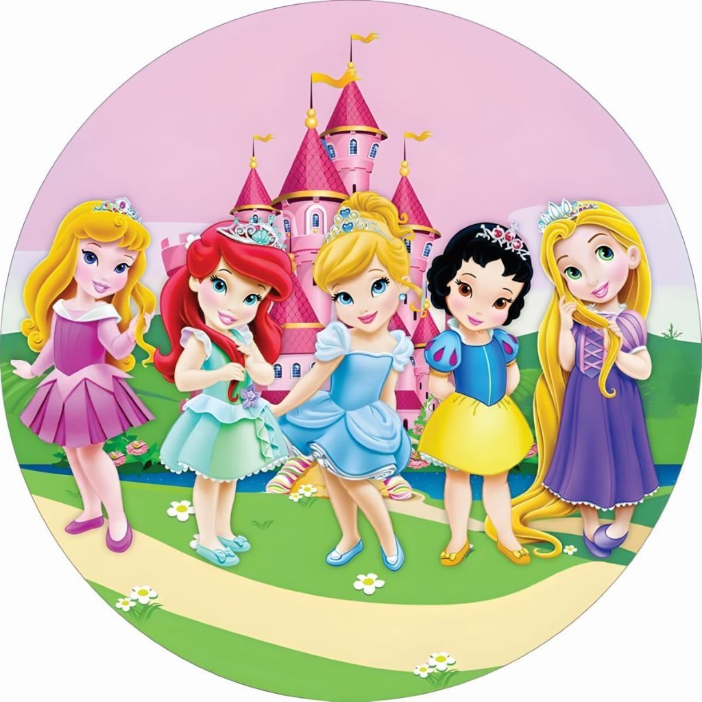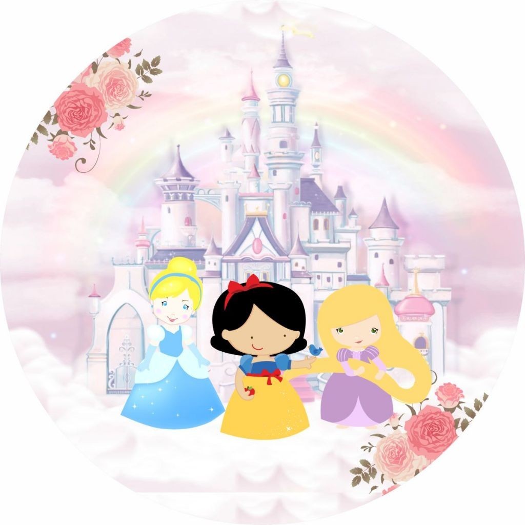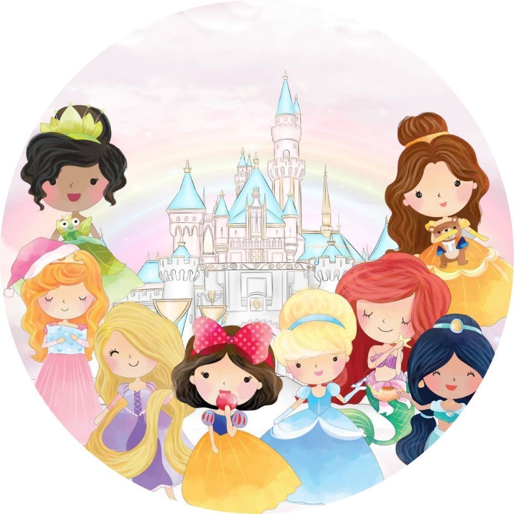 Capa Painel Redondo Mesa Princesas Castelo Sublimado C/ Elástico 50×50Cm
