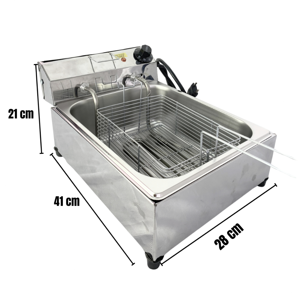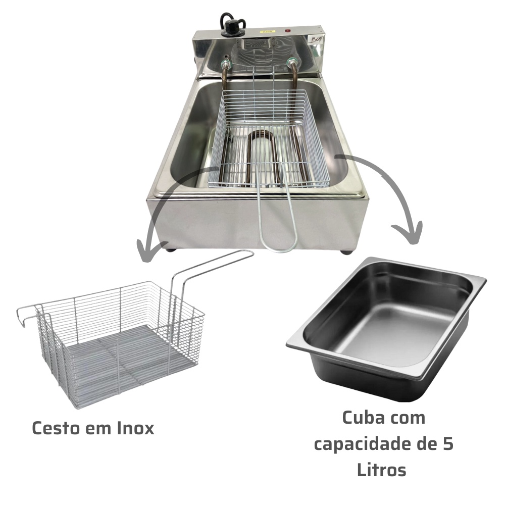 Fritadeira Elétrica Cuba Inox Retangular Inox 5 Litros Industrial Batata Frita Quadrada Óleo