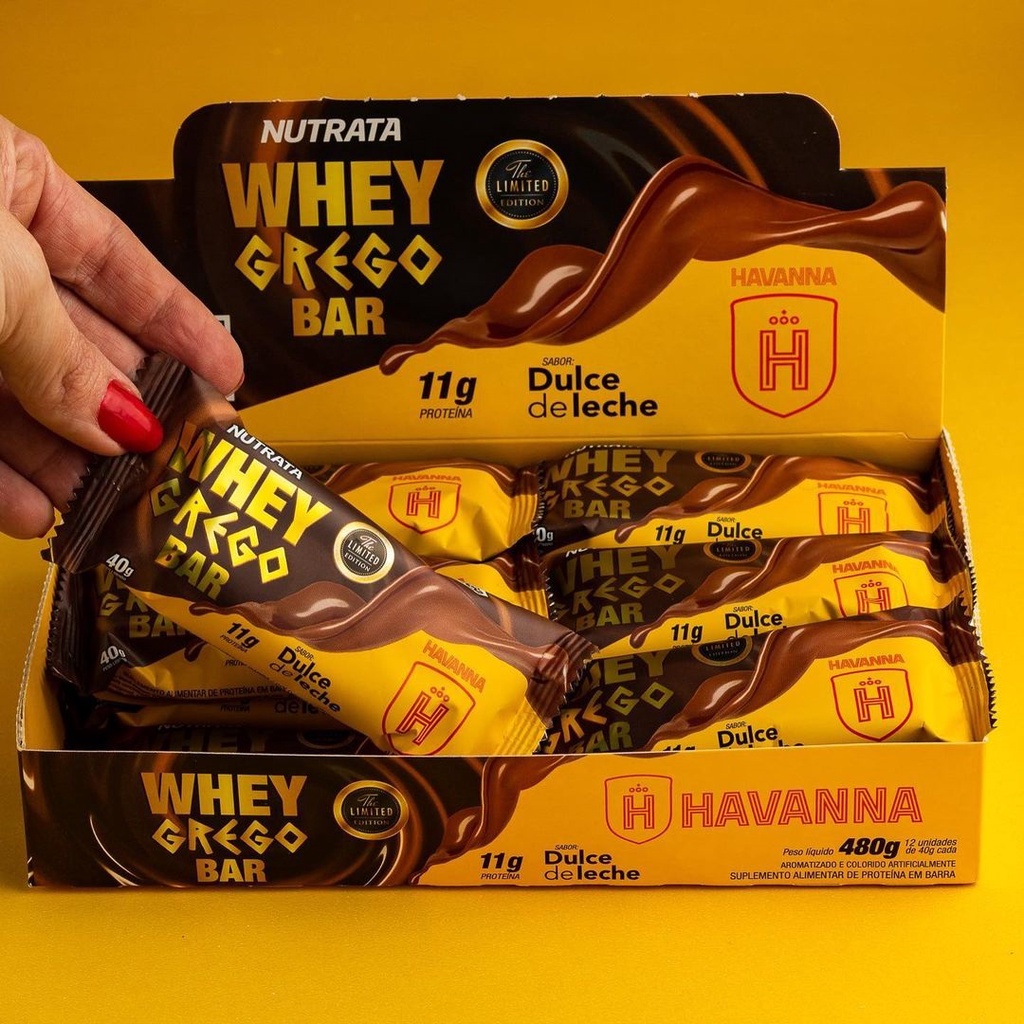 Whey Grego Bar Doce de Leite Havanna Nutrata Caixa com 12 un
