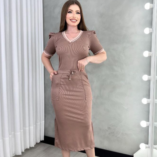 Conjunto Evangélico Feminino Canelado com Saia e Blusa