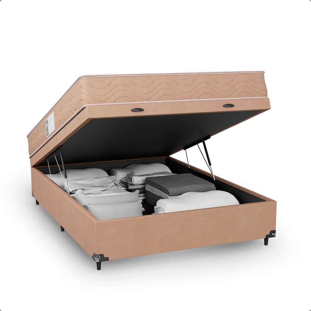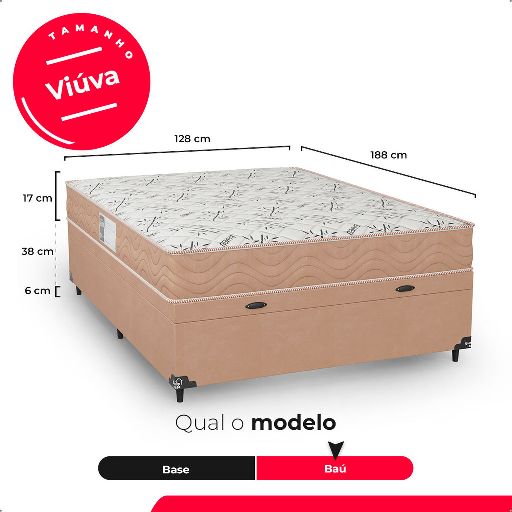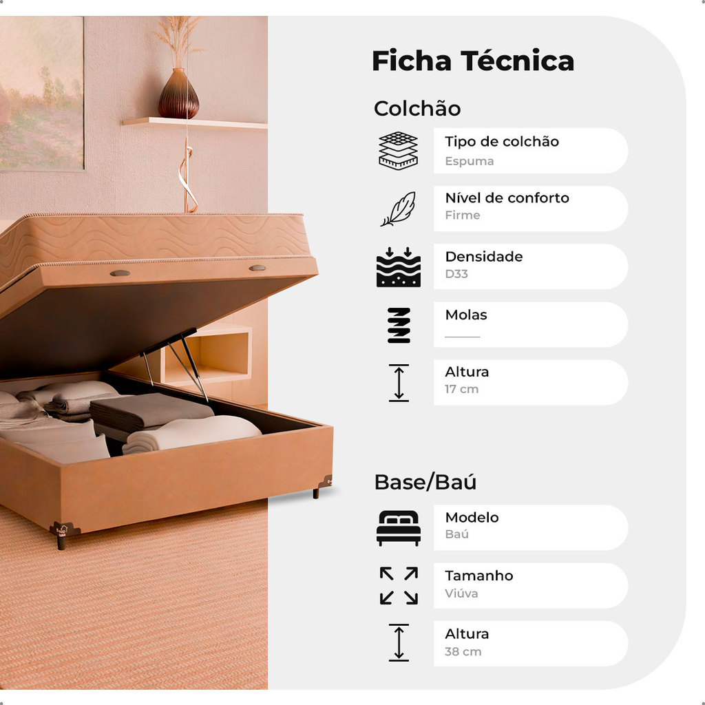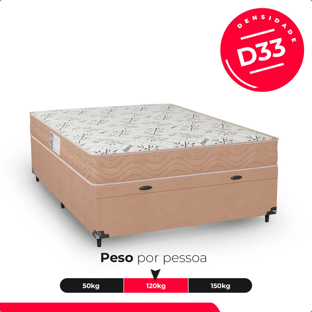 Baú Viúva + Colchão D33 One Face - Suede Bege - e-Shop Casa
