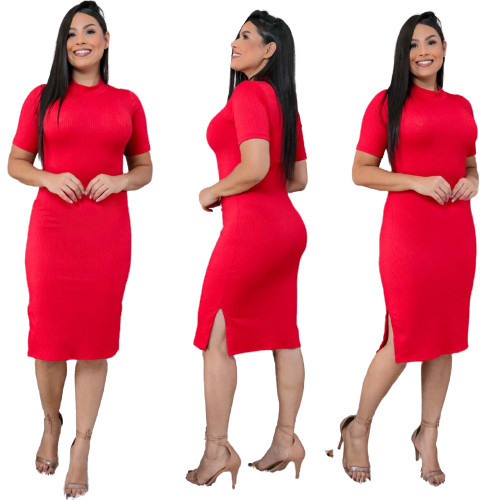 Vestido Midi Feminino Canelado Evangélico Gospel com Duas Fendas Laterais em Malha Canelada