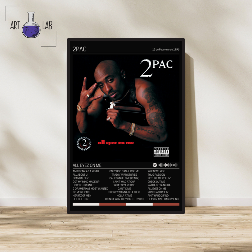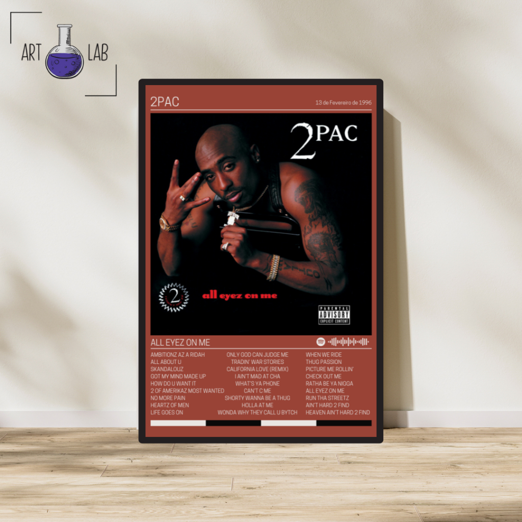 Quadro decorativo 2Pac - All Eyez On Me álbum moldura e vidro Spotify