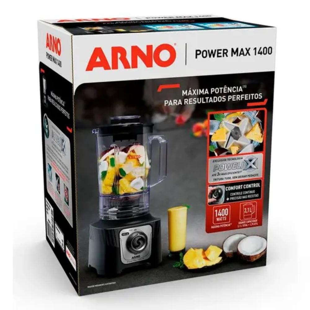 Liquidificador 15 Velocidades Power Max Confort 127V 1400W Preto